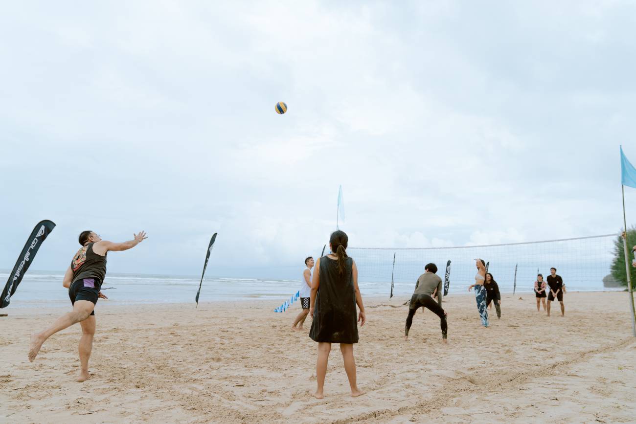 It was an event filled with water sports fans, Zumba, SUP board, beach volleyball, and beach yoga, led by teacher Nan Warisa Suthikulpanich. She is a famous yoga teacher whose expertise is attested to by a certificate from Yoga Alliance International. Segafredo Zanetti Thailand has also invited the young singer-actress “Note Panayanggool” to represent fans of water sports alongside. The day ended with a mini-concert by “Wanyai X Mon Monik.” At the fun fair, there was also food and numerous local products.