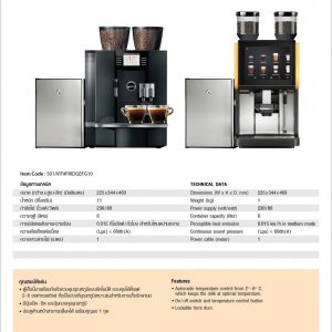 • TECHNICAL DATA Dimensions (W x H x D) (mm) : 225 x 344 x 469 Weight (kg) : 11 Power supply (volt/watt) : 230/80 Container capacity (liter) : 8 Perceptible heat emission : 0.015 kw/h in medium mode Continuous sound pressure : (Lpa) < 60db (A) Power cable (meter) : 1 FEATURES Automatic temperature control from 2  - 6 °C, with keeps the…