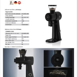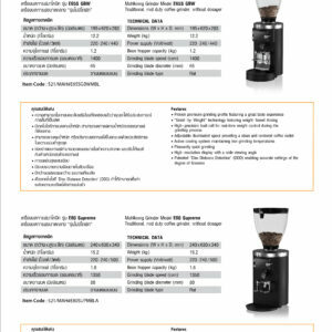 • TECHNICAL DATA  Dimension (W x H x D, mm) : 124 x 430 x 192 Weight (KG) : 5.6 Power Supply (Volt/Watt) : 220-240/310 Bean Hopper Capacity (g) : 300 Grinding Blade Speed (rpm) : 1,350 Grinding Blade Diameter (mm) : 55 Grinding Blade Type : Flat   FEATURES Extremely Precise, with a dose consistency of 0.1 – 0.15 grams,…