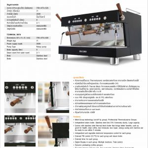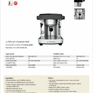฿570,000.00฿541,500.00 - Commercial Espresso Machine TECHNICAL DATA Dimensions (W x H x D, mm) : 770x470x640 Weight (kg) : 70 Power supply (Volt/watt) : 220/ 5445 Water connections : Firm water connection Coffee boiler capacity (liter) : 3.4 Steam boiler capacity (liter) : 7 Steam wand / hot water wand : 2/1 Body : Stainless Steel Boiler : Stainless Steel Power cable…