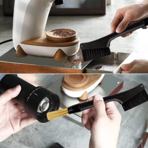 - - Dual-Head Coffee Grinder Cleaning Brush (Size: 25 × 3.5 cm) - Sturdy plastic handle for a comfortable and convenient grip. - Dual nylon brush heads for versatile use. - Small brush head: Cleans surfaces and small parts, reaching tight areas. - Large brush head: Cleans larger surfaces quickly and efficiently.