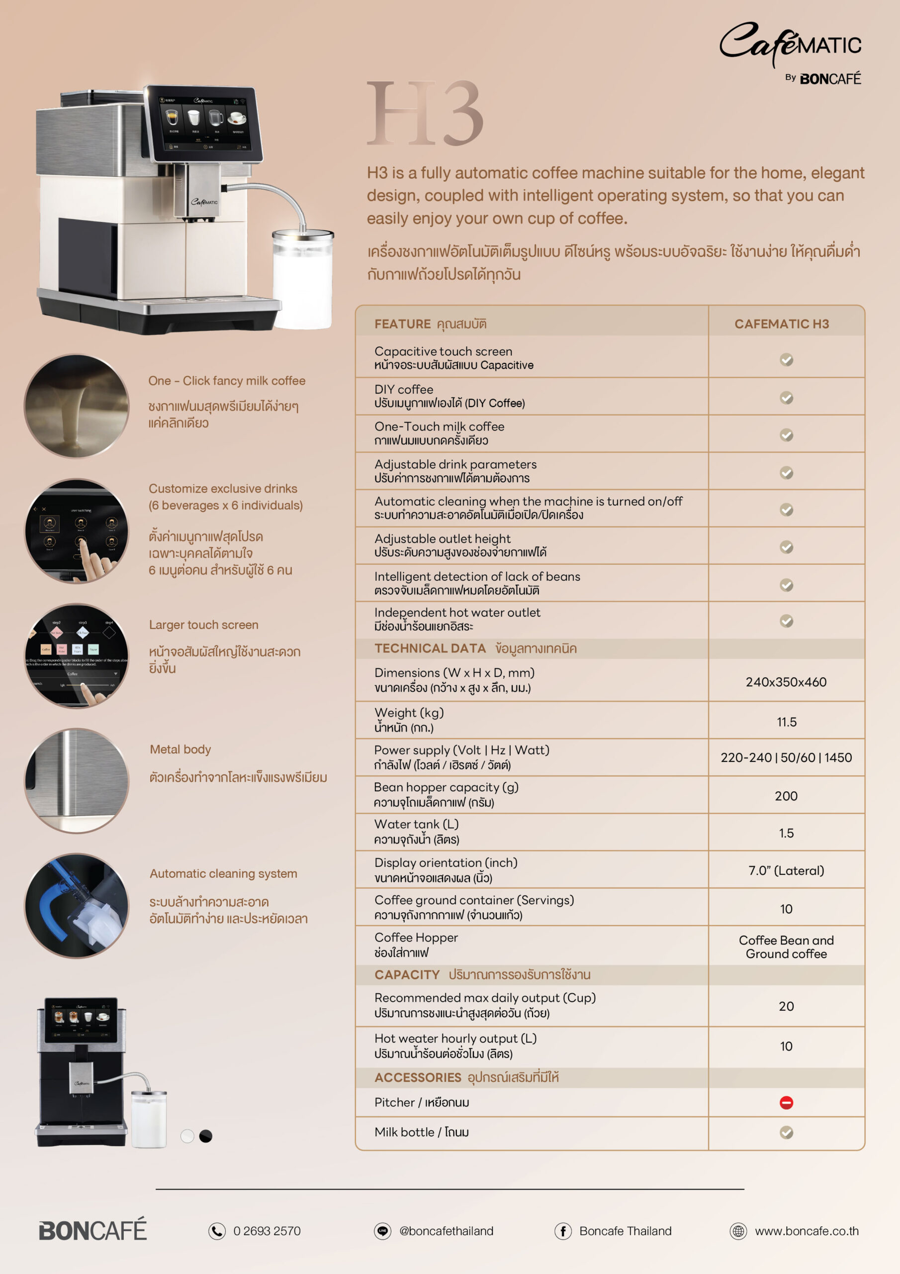 H3 is a fully automatic coffee machine suitable for the home, elegant design, coupled with intelligent operating system, so that you can easily enjoy your own cup of coffee.