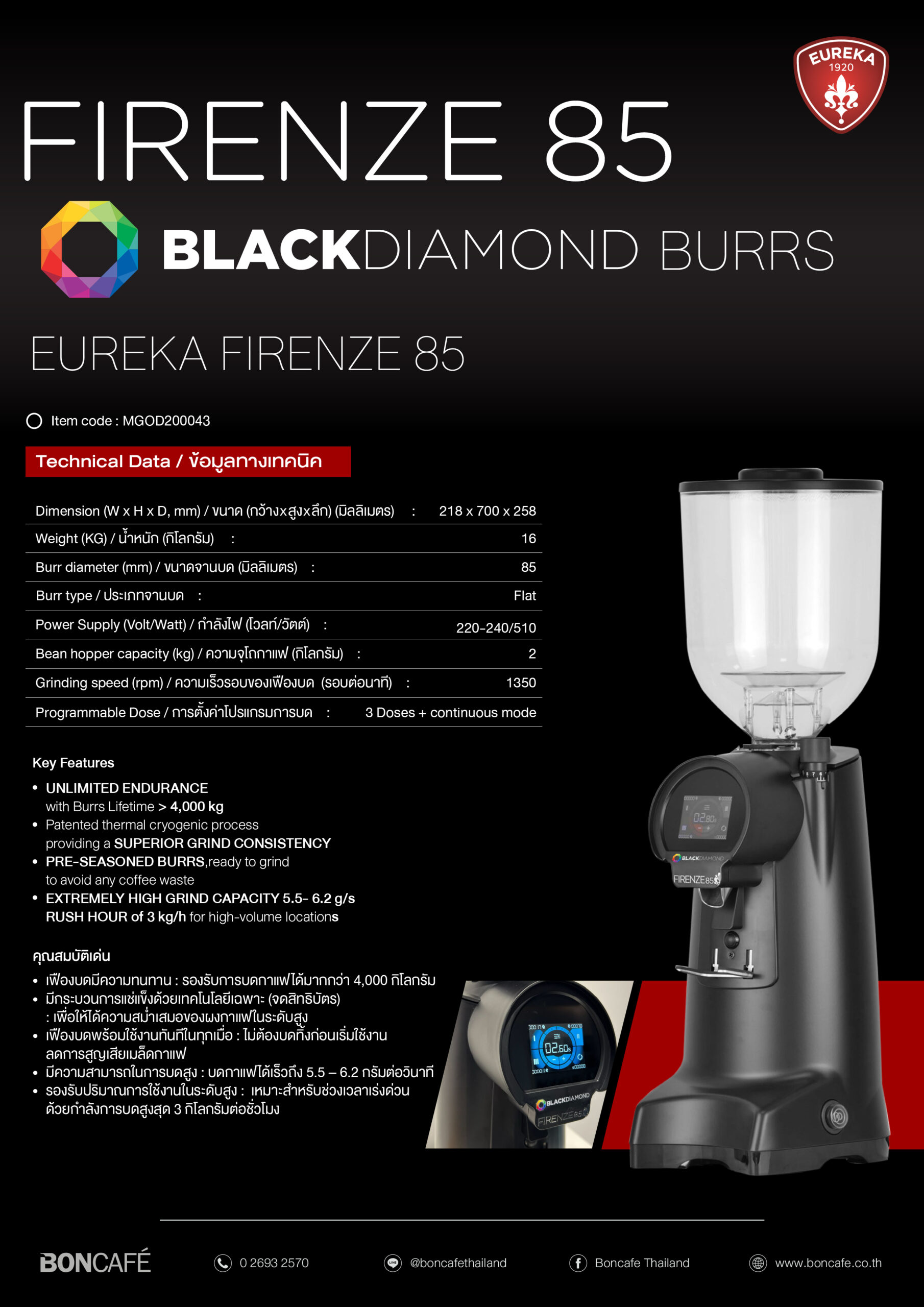 Eureka Firenze 85 (MATT BLACK) Black Diamond Grinder