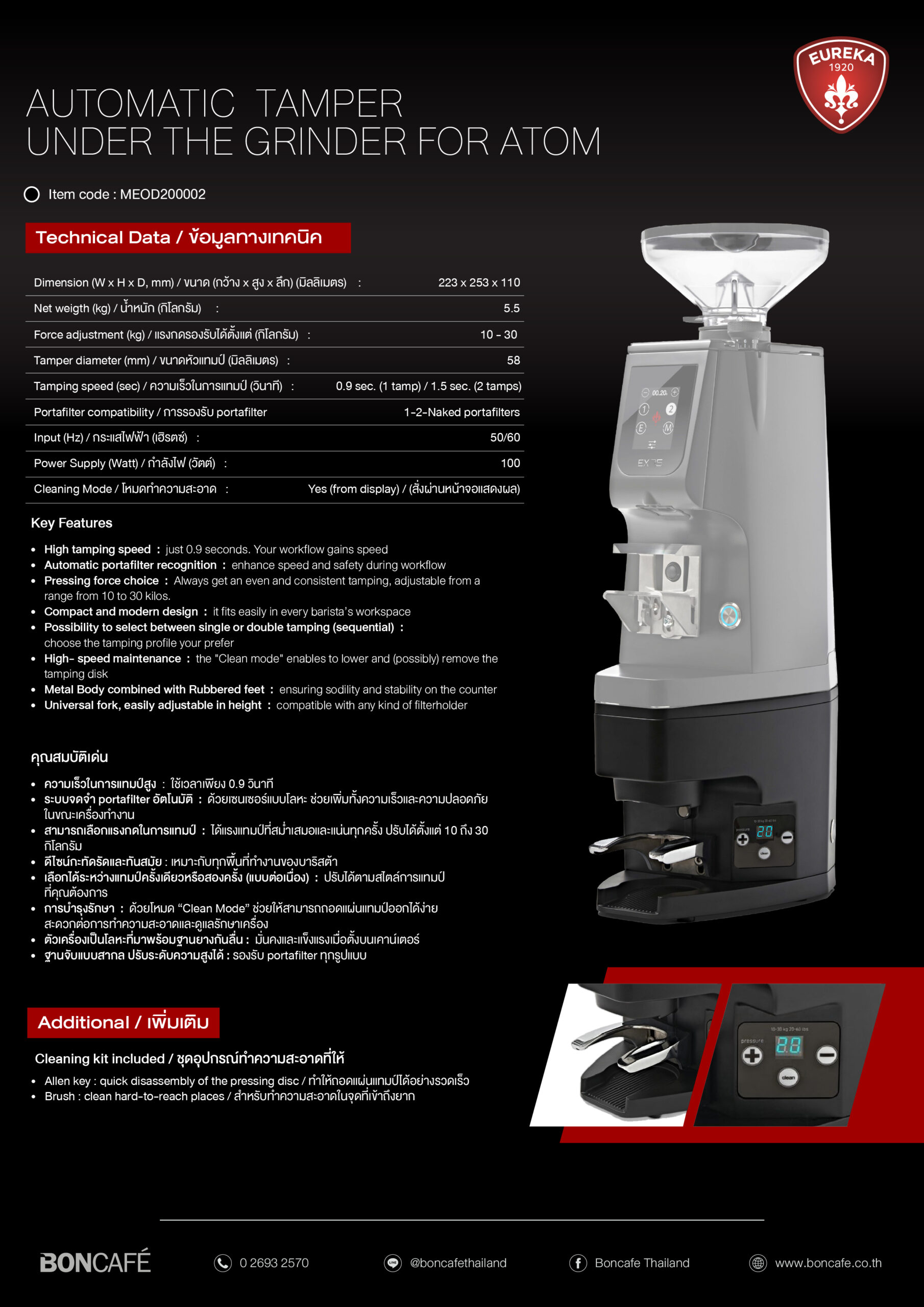 - Pressing force choice : Always get an even and consistent tamping, adjustable from a range from 10 to 30 kilos.