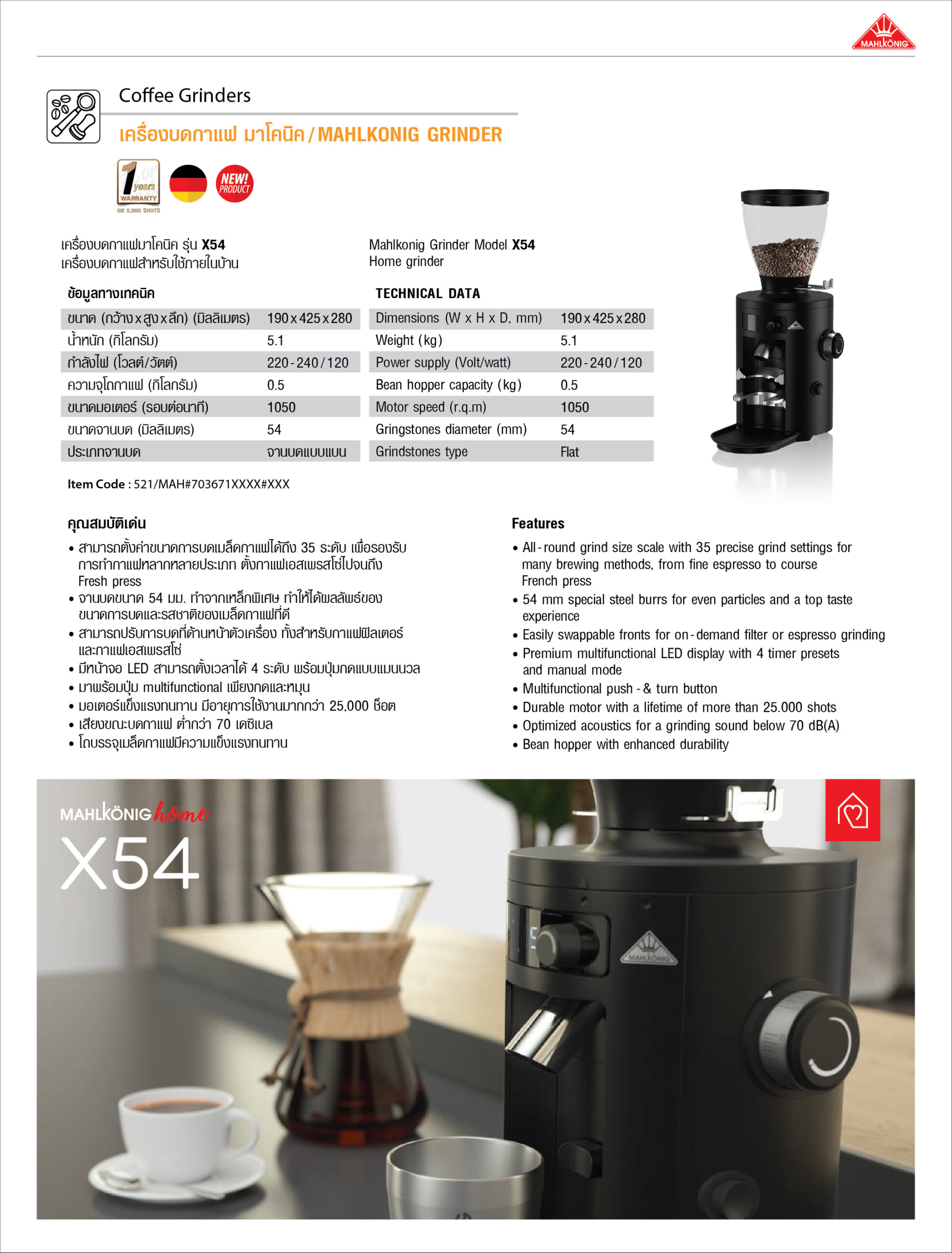 - MAHLKONIG GRINDER MODEL X54 (New Version)