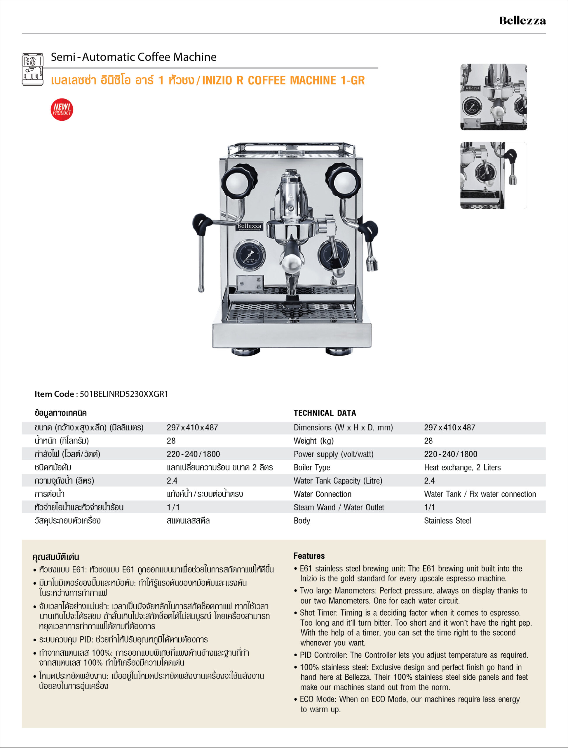 - 100% stainless steel : Exclusive design and perfect finish go hand in hand here at Bellezza. Their 100% stainless steel side panels and feet make our machines stand out from the norm.