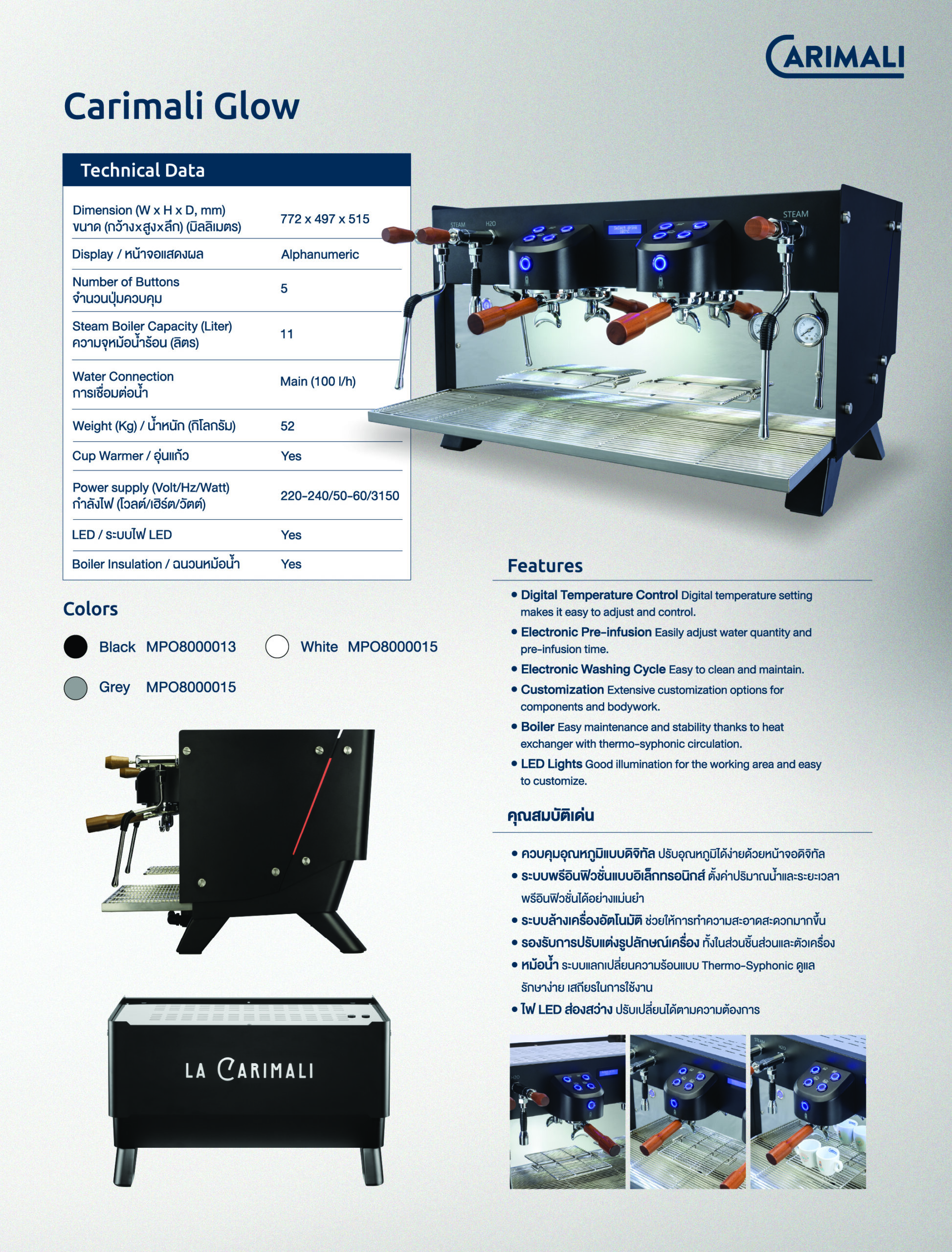 - Electronic Pre-infusion Easily adjust water quantity and pre-infusion time.