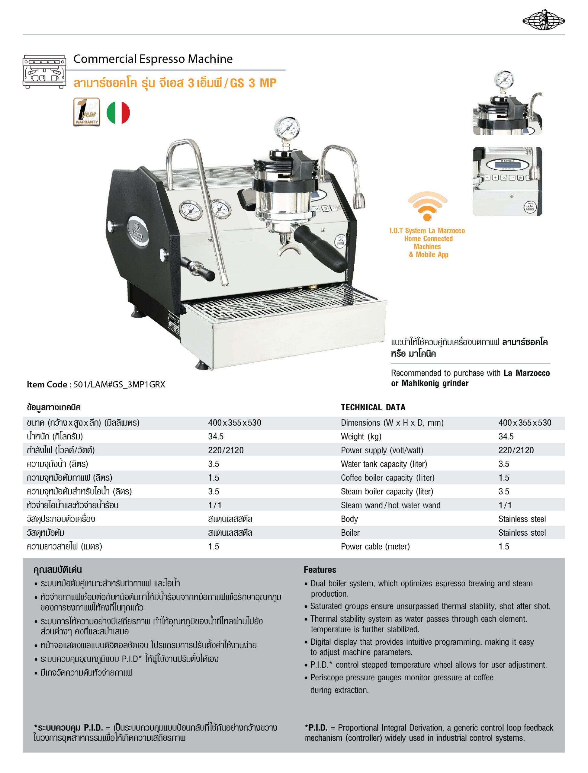 - Dual boiler separate boilers optimize espresso brewing and steam production.