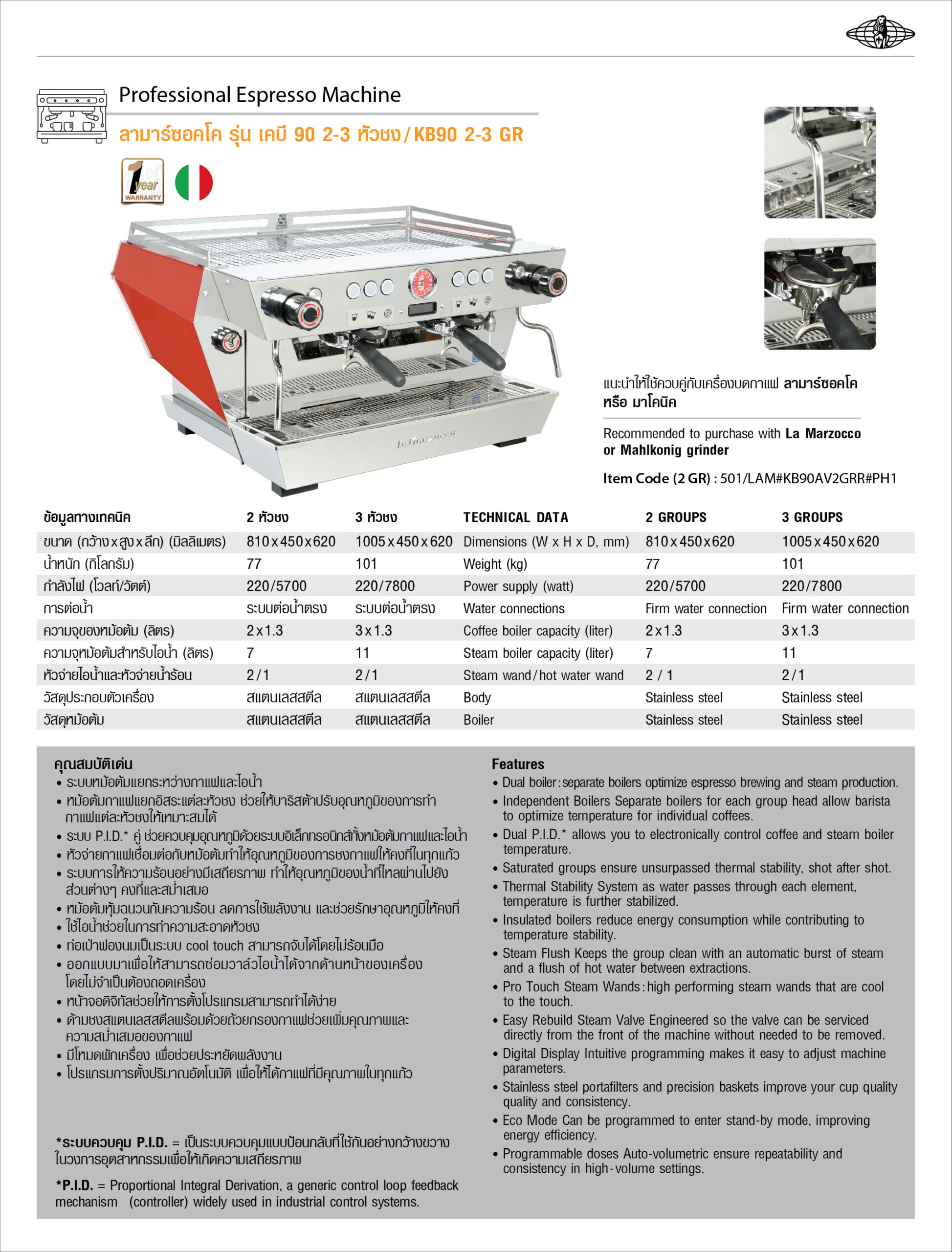 - Dual P.I.D.* allows you to electronically control coffee and steam boiler temperature.