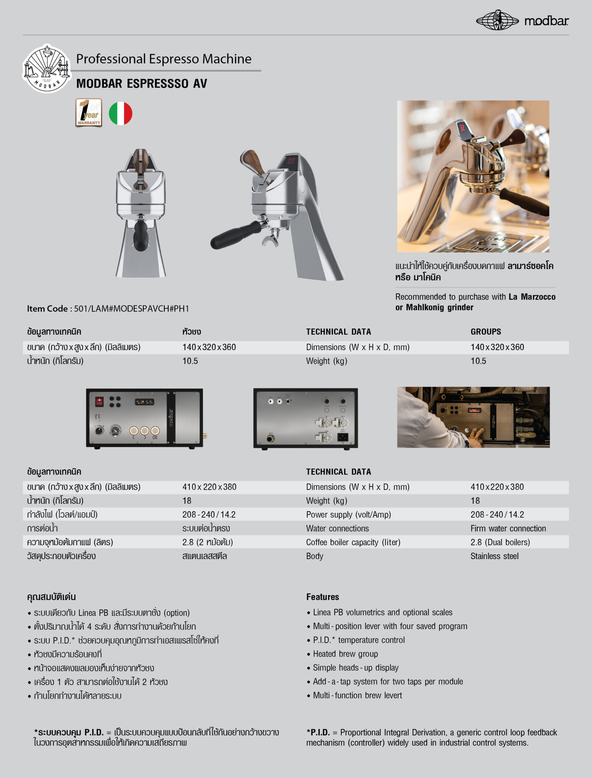 - Coffee boiler capacity (little) : 2.8 (Dual boilers)