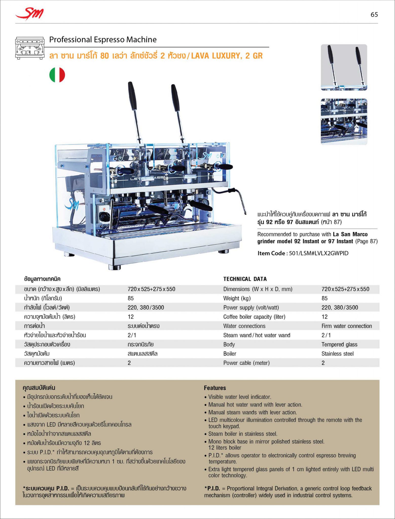 Tags LEVA LUXURY, ลา ซาน มาร์โก้, เครื่องทำกาแฟระบบกึ่งอัตโนมัติ, เลวา ลักซ์ชัวรี่