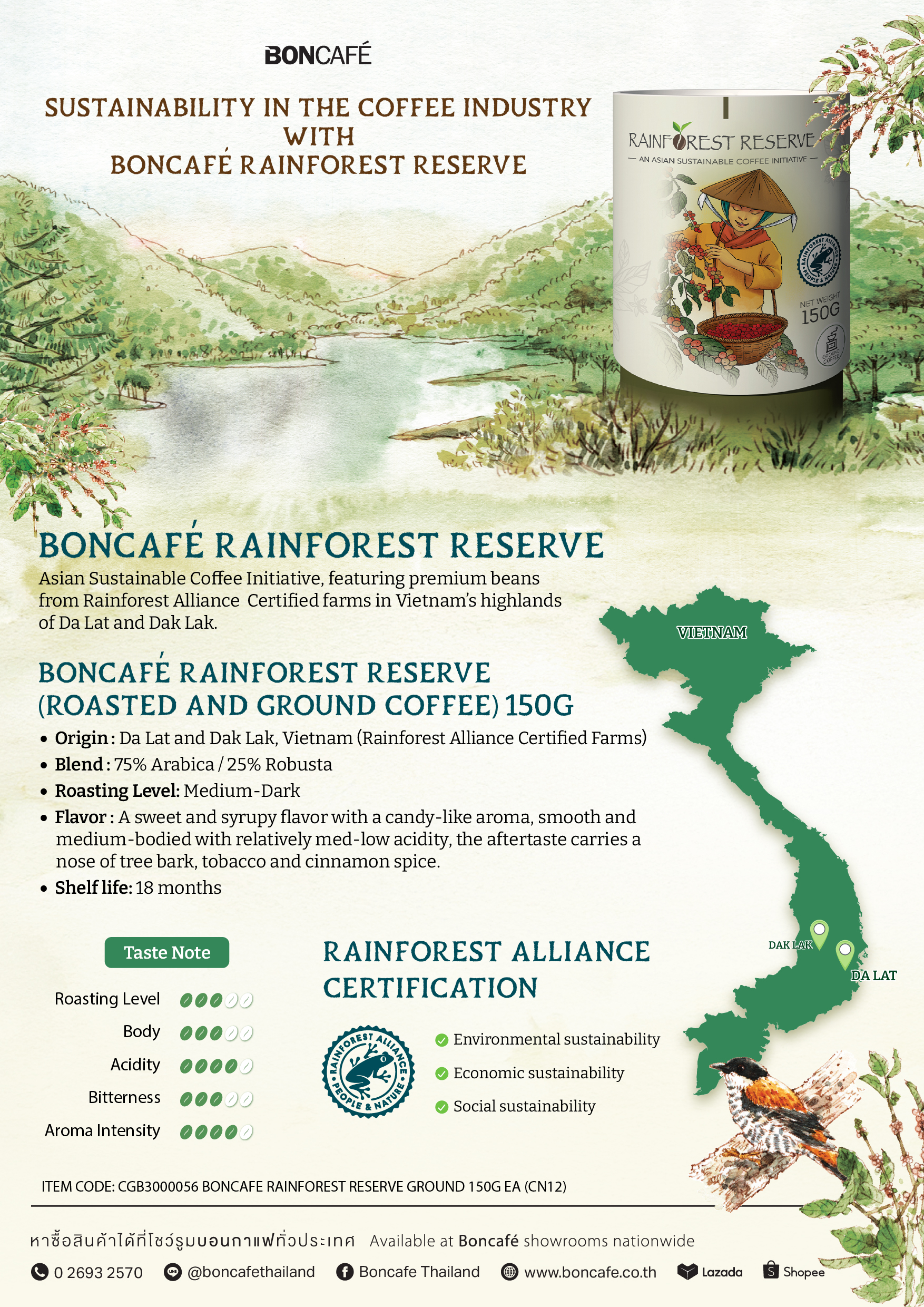 - Origin: Da Lat and Dak Lak, Vietnam (Rainforest Alliance Certified Farms)