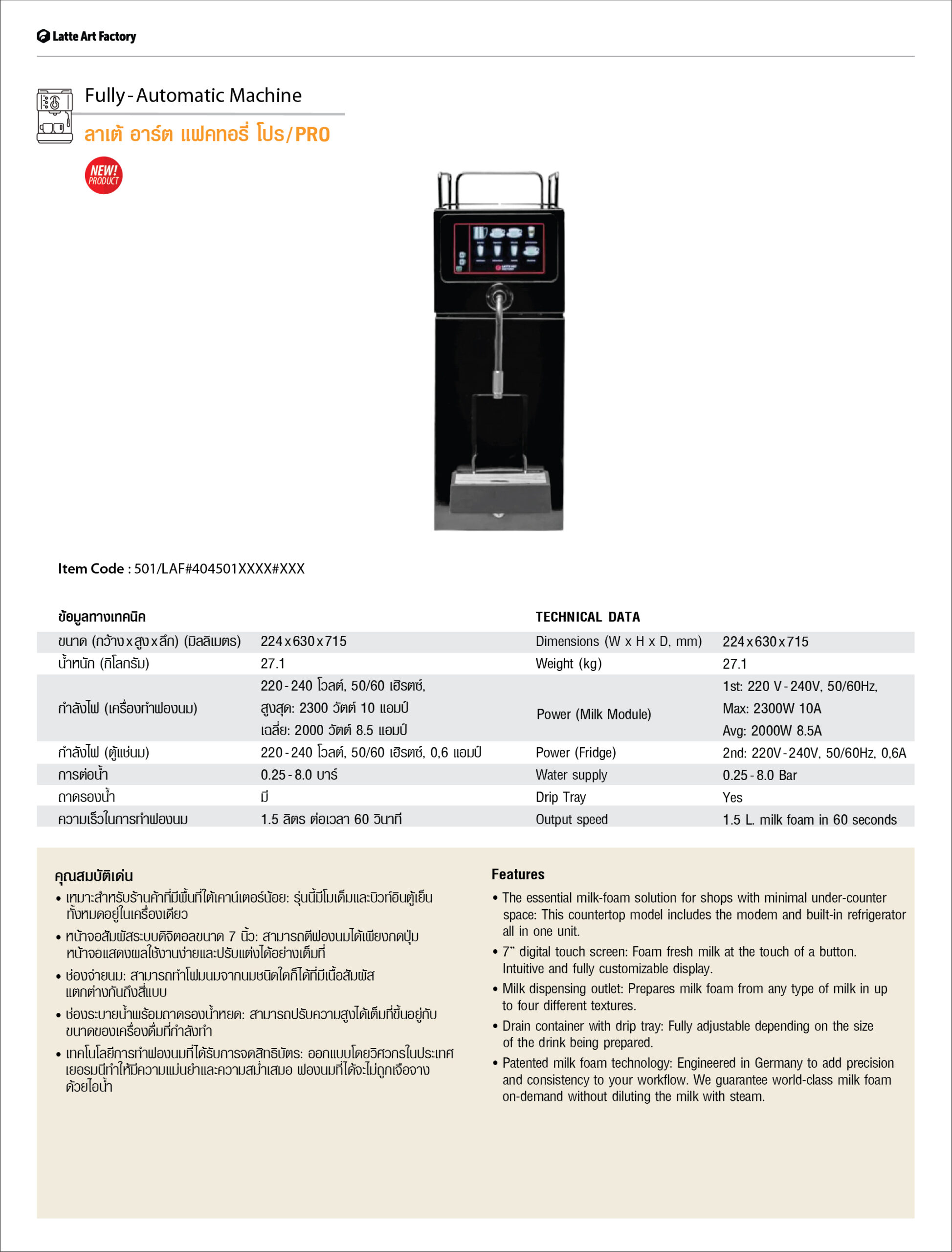 Categories Accessories, Equipments, Latte Art Factory, เครื่องทำฟองนมอัตโนมัติ