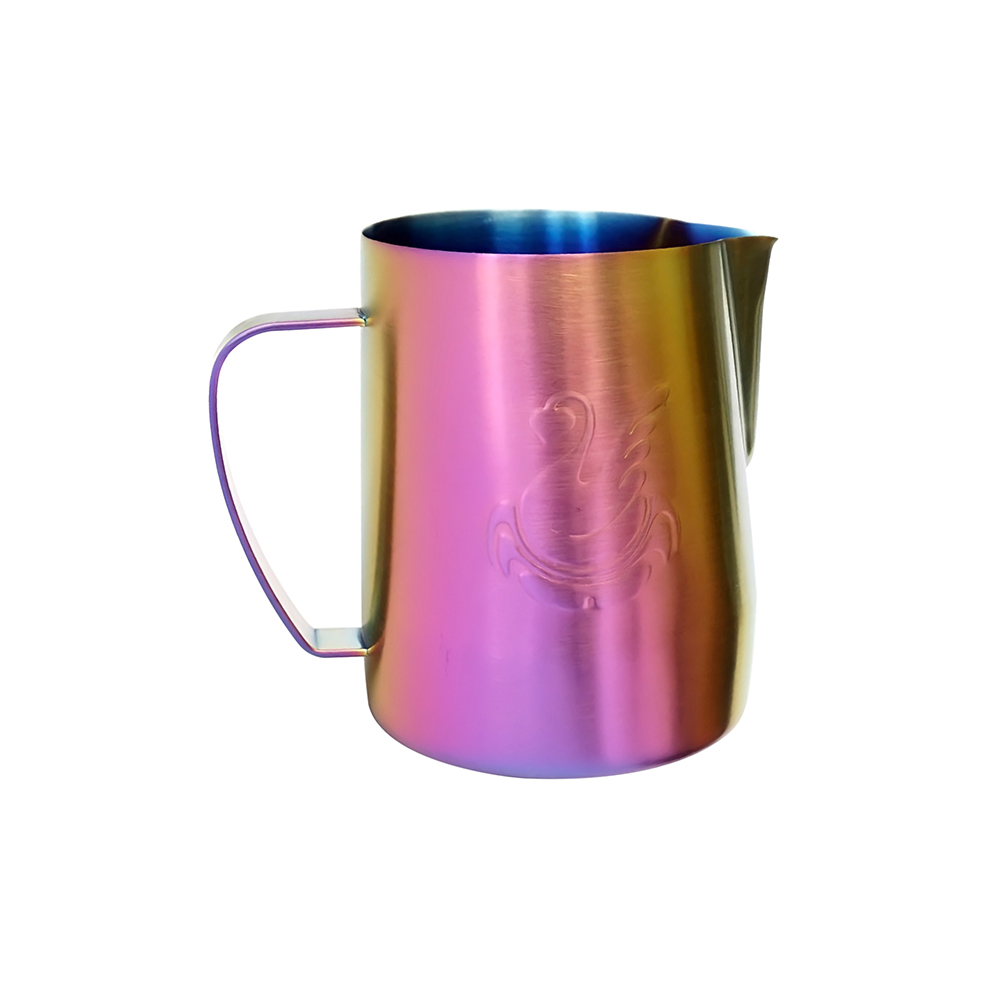 Short ergonomic handle designed to drop the milk pour straight down and help the palm to get closer to a Jug’s body
