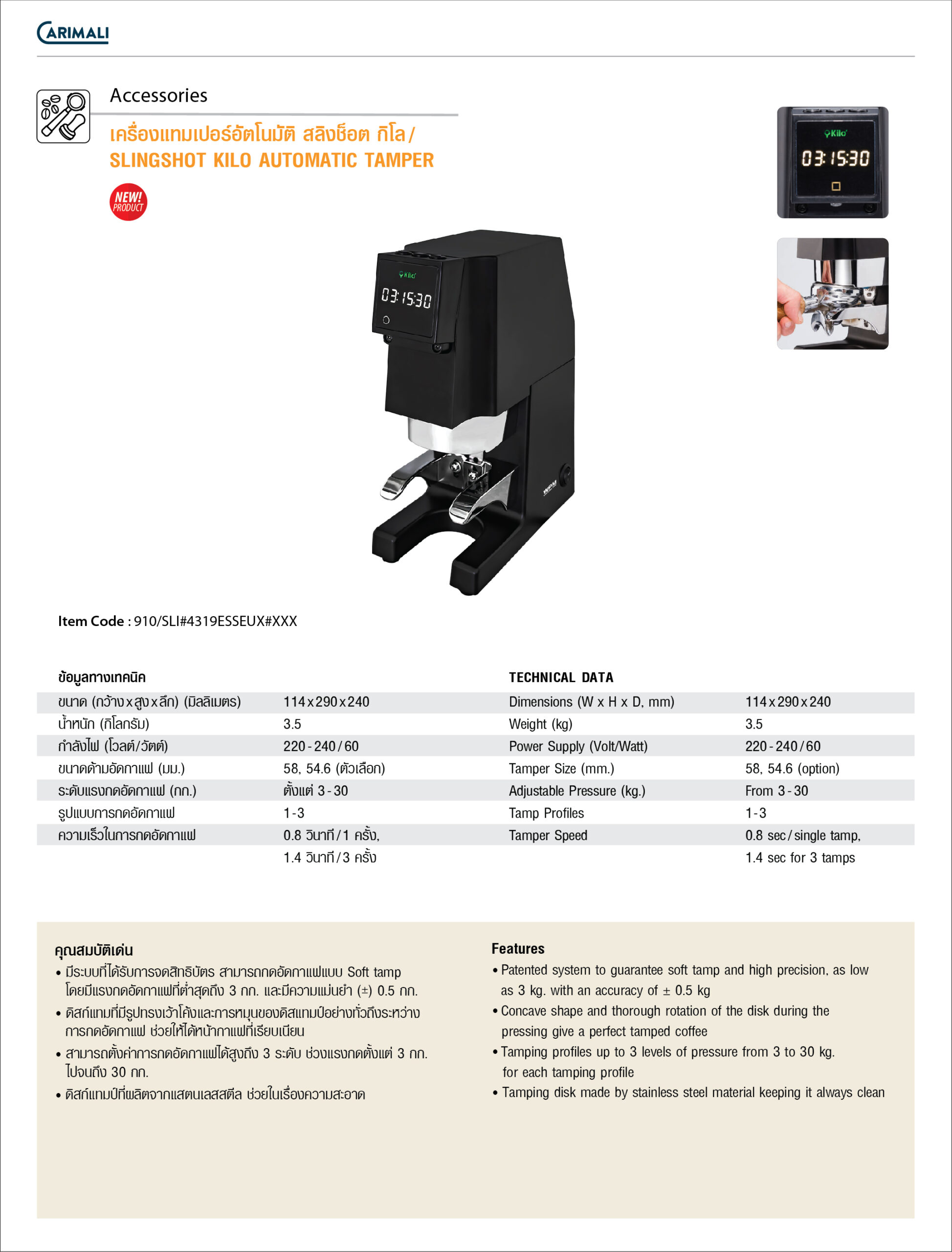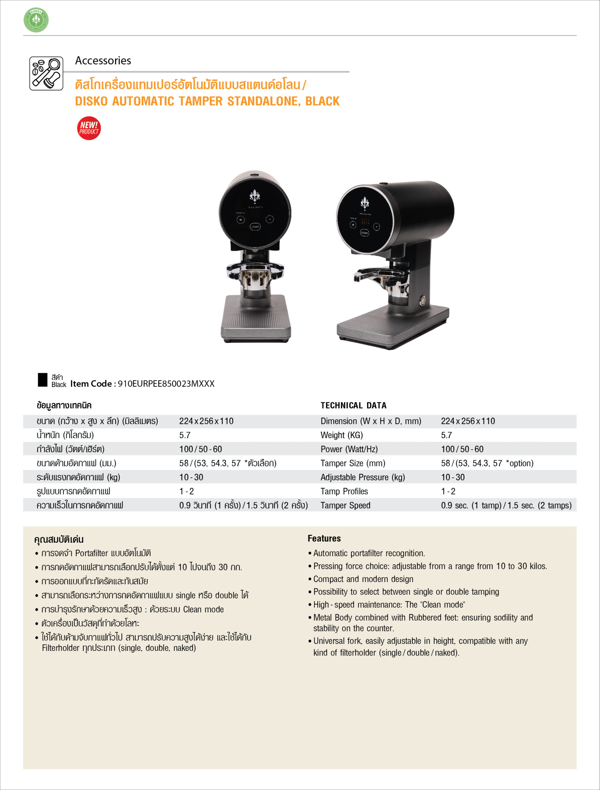 Tamper Size (mm.) : 58/ (53, 54.3, 57 * option)