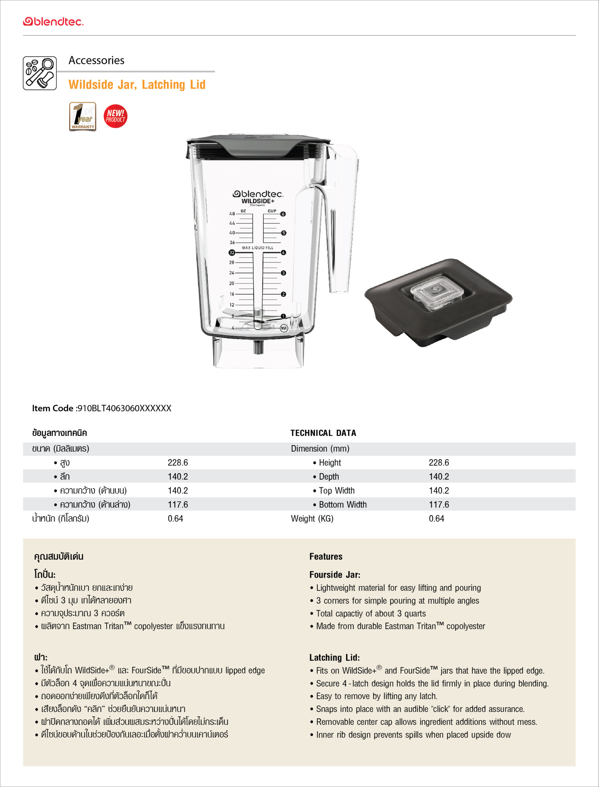 Blendtec รุ่น Wildside Jar, Latching Lid (825)
