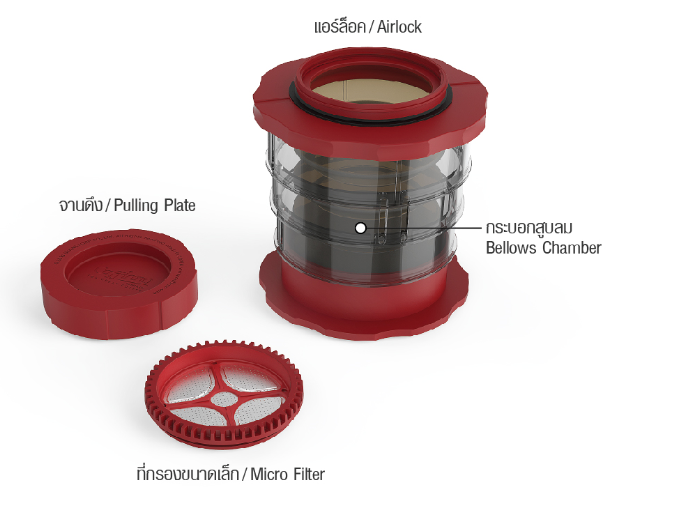 - Perfect cleaning of micro-holes (filter) with bellows’ pumping action.