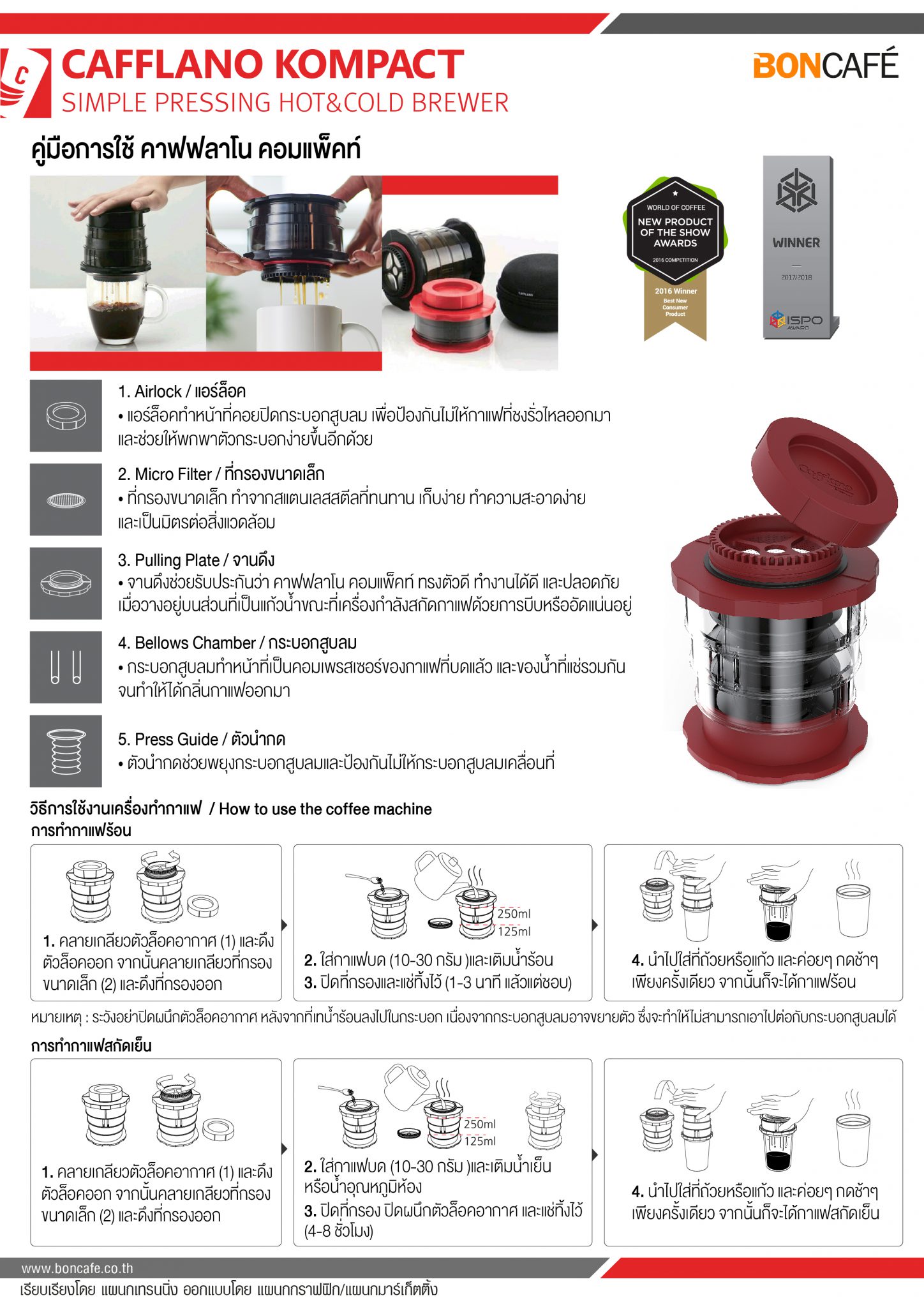 Cafflano Kompact is an advanced press-typed (immersion) coffee brewer, which consists of silicone Bellows Chamber (easy & efficient power transmitting press chamber) with a foldable Press Guide, ultra-fine etched stainless Micro Filter, and Airlock to keep it compact and to enable cold brew on-the-go. It’s simple pressing, hot & cold brewer!sty coffee of your own.