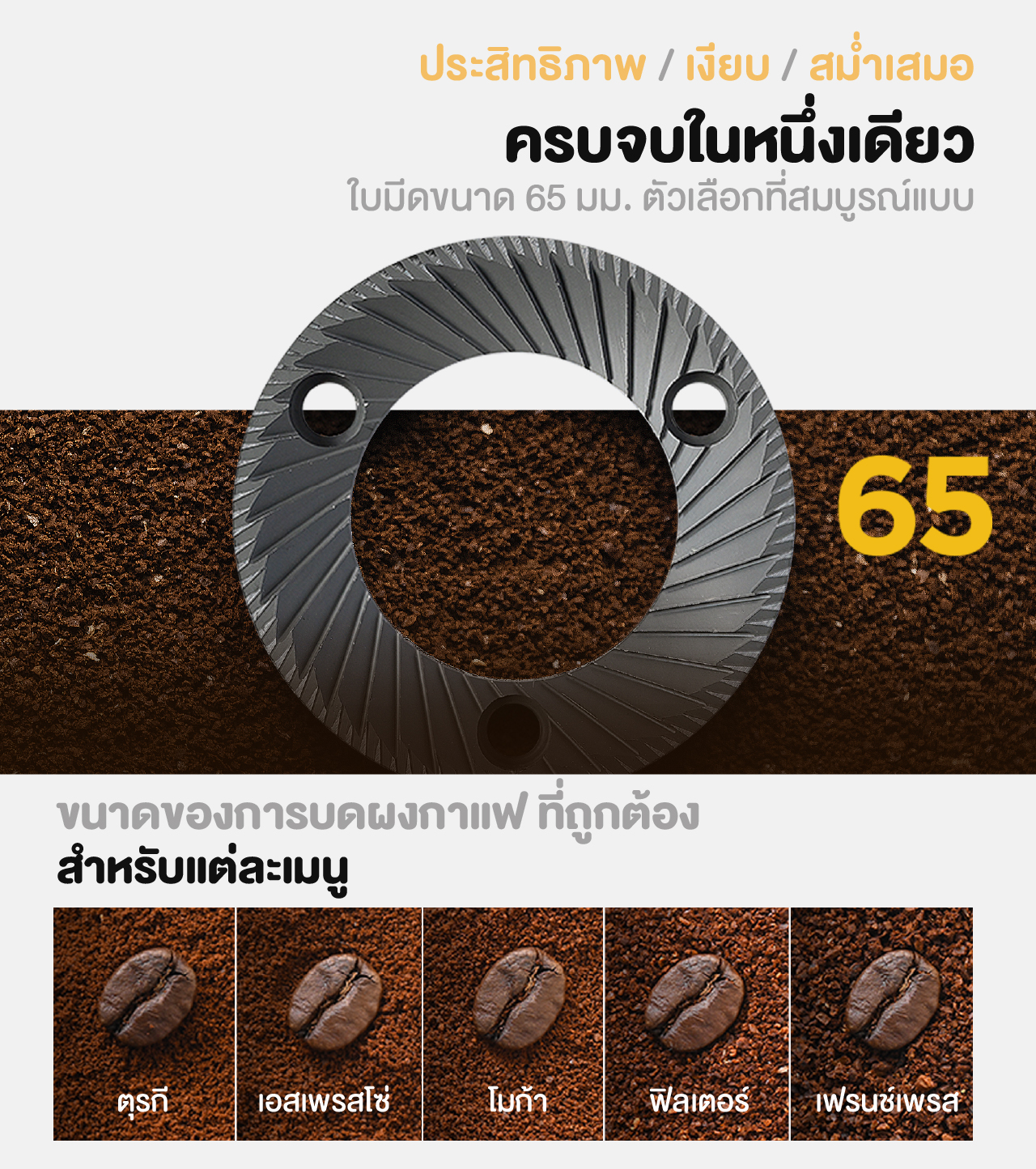 – โดยความสม่ำเสมอของผงบดมีมากกว่า 10% ของปริมาณรวม ทำให้กาแฟไม่เสียบาลานซ์ของรสชาติ