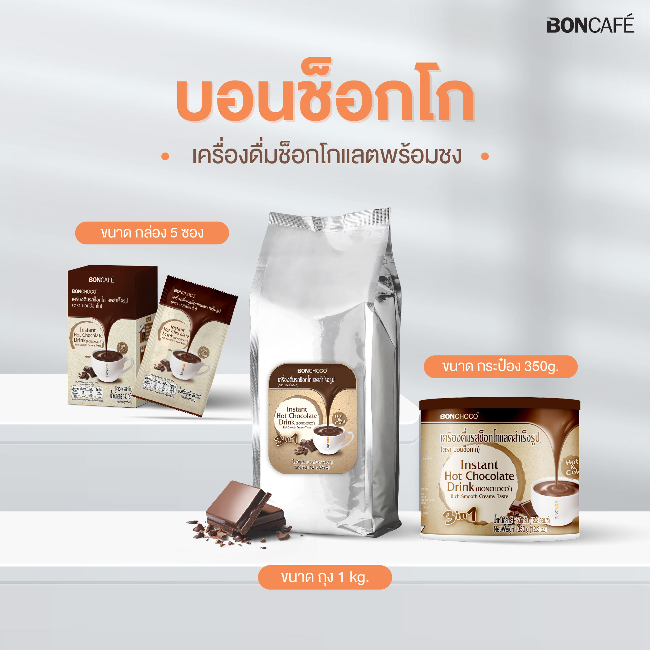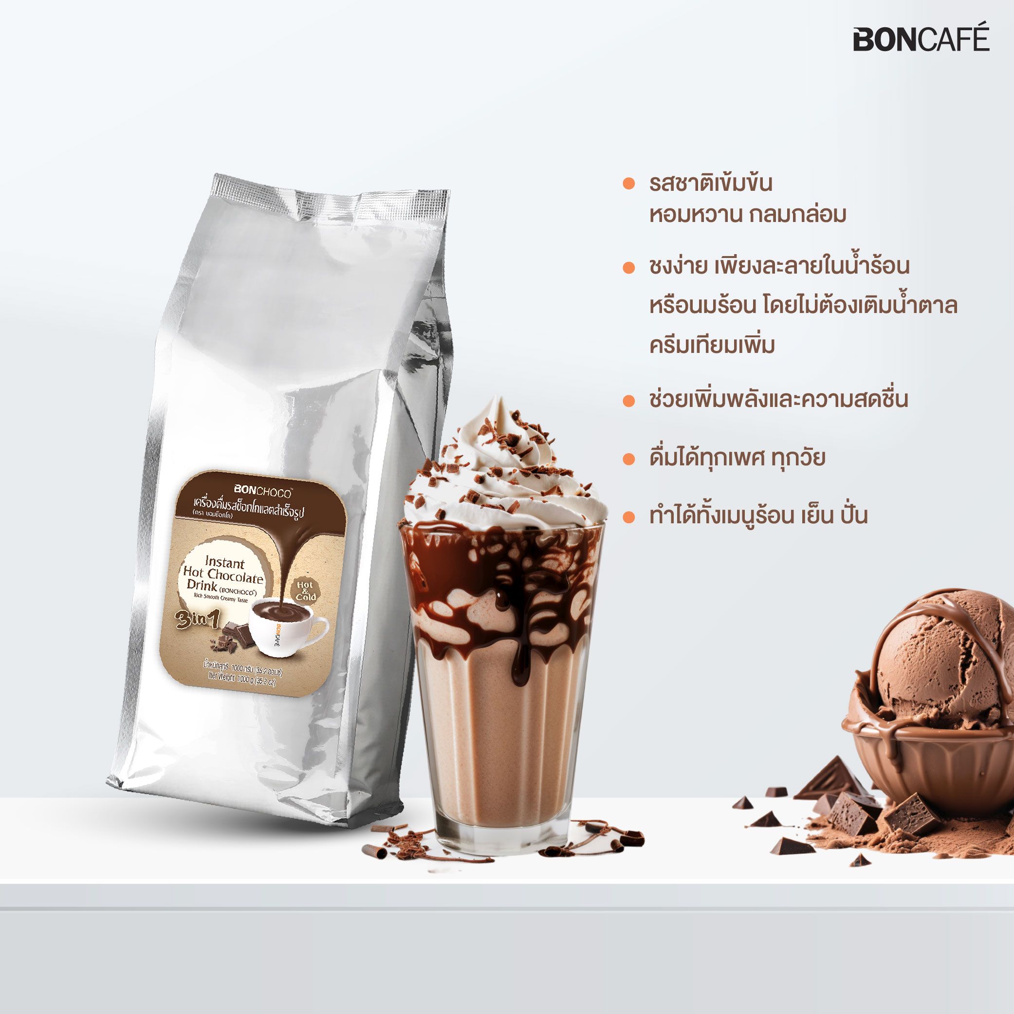 Rich and smooth enjoy premium-quality chocolate. Bonchoco is a ready-to-mix chocolate drink in convenient powder form. Just scoop and mix with hot water for an instant, delicious chocolate drink.