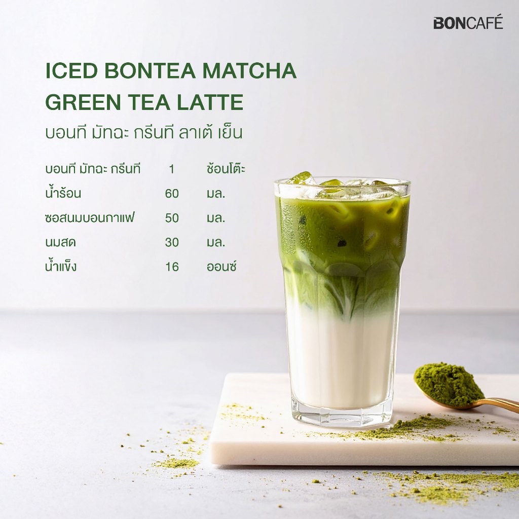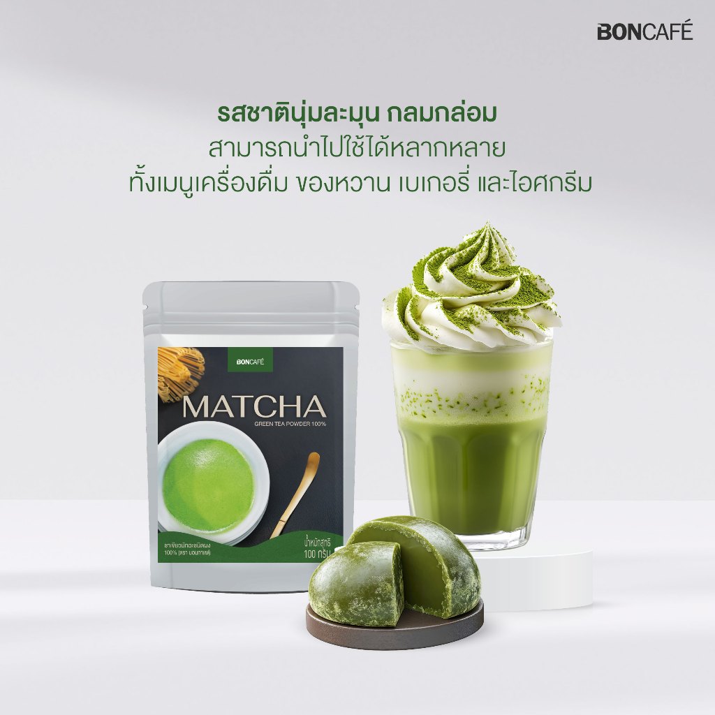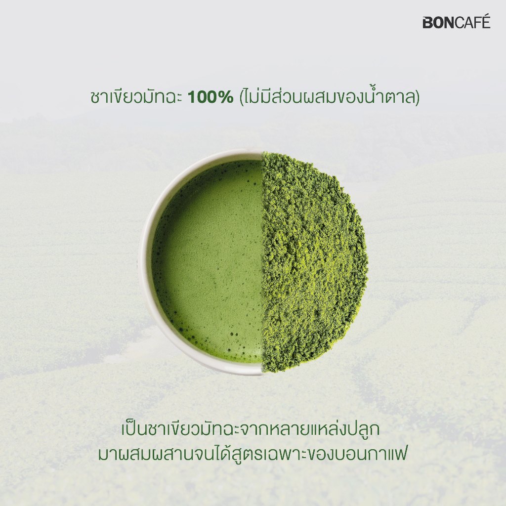 100% Matcha Green Tea (no added sugar), this matcha green tea is crafted from a blend of leaves sourced from multiple tea-growing regions, expertly combined to create Boncafé’s unique signature recipe.