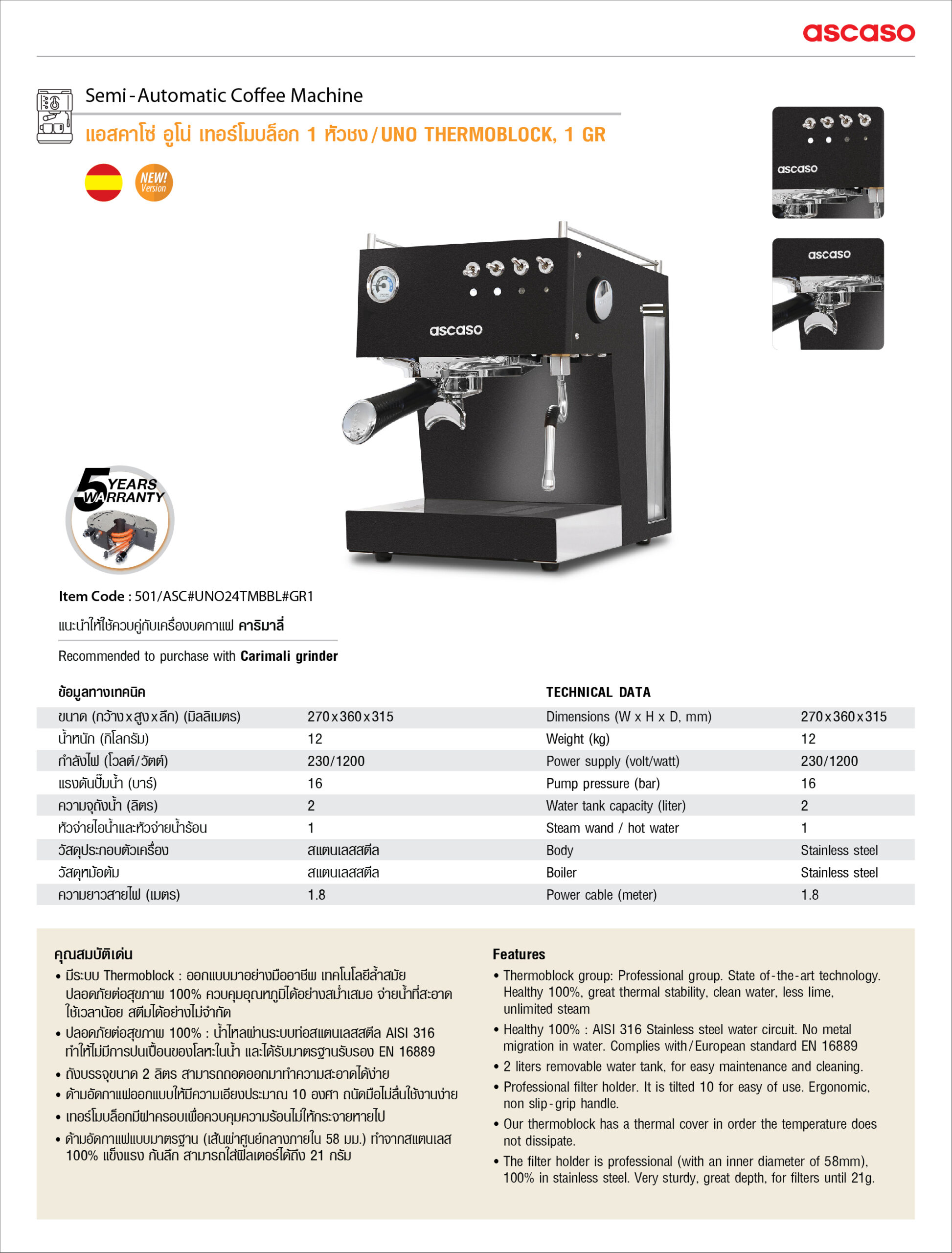 Ascaso Uno Thermoblock, 1-Gr