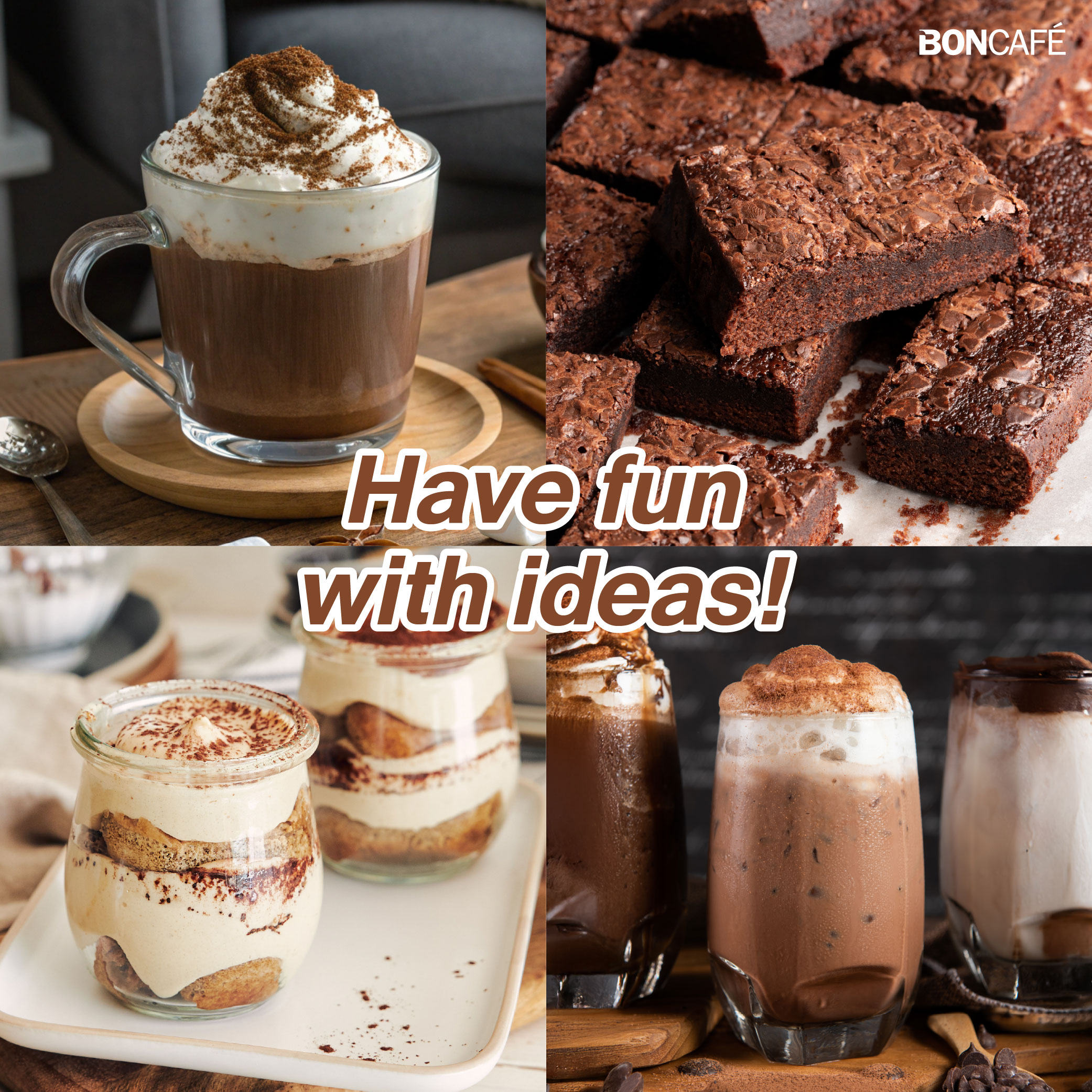 ผงโกโก้ 100% คัดสรรจากหลายแหล่งชั้นดี นำมาผสมผสานจนได้ โกโก้เข้มข้นกลมกล่อม เมื่อนำมาชงเป็นเครื่องดื่ม จะได้รสชาติหอม อร่อย และเข้มข้น กลมกล่อมทุกแก้ว เหมาะสำหรับผู้ที่ชื่นชอบเครื่องดื่มโกโก้คุณภาพ
