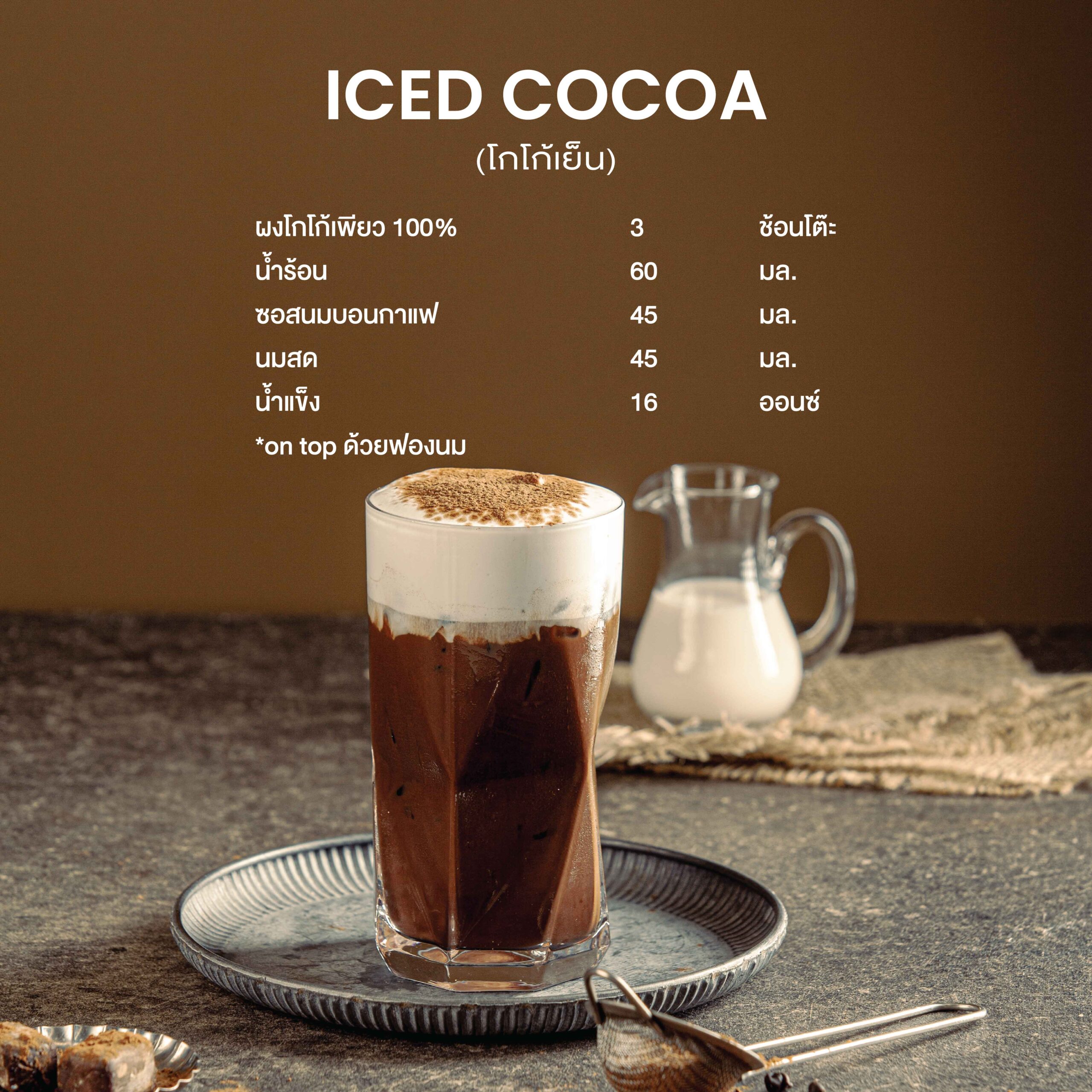 ละลายผงโกโก้เพียวกับน้ำร้อน ตามด้วยซอสนมบอนกาแฟ และนมสด คนส่วนผสมให้เข้ากัน เทลงในแก้วใส่น้ำแข็งสำหรับใช้เสิร์ฟ ตกแต่งด้วยฟองนมด้านบนพร้อมเสิร์ฟ