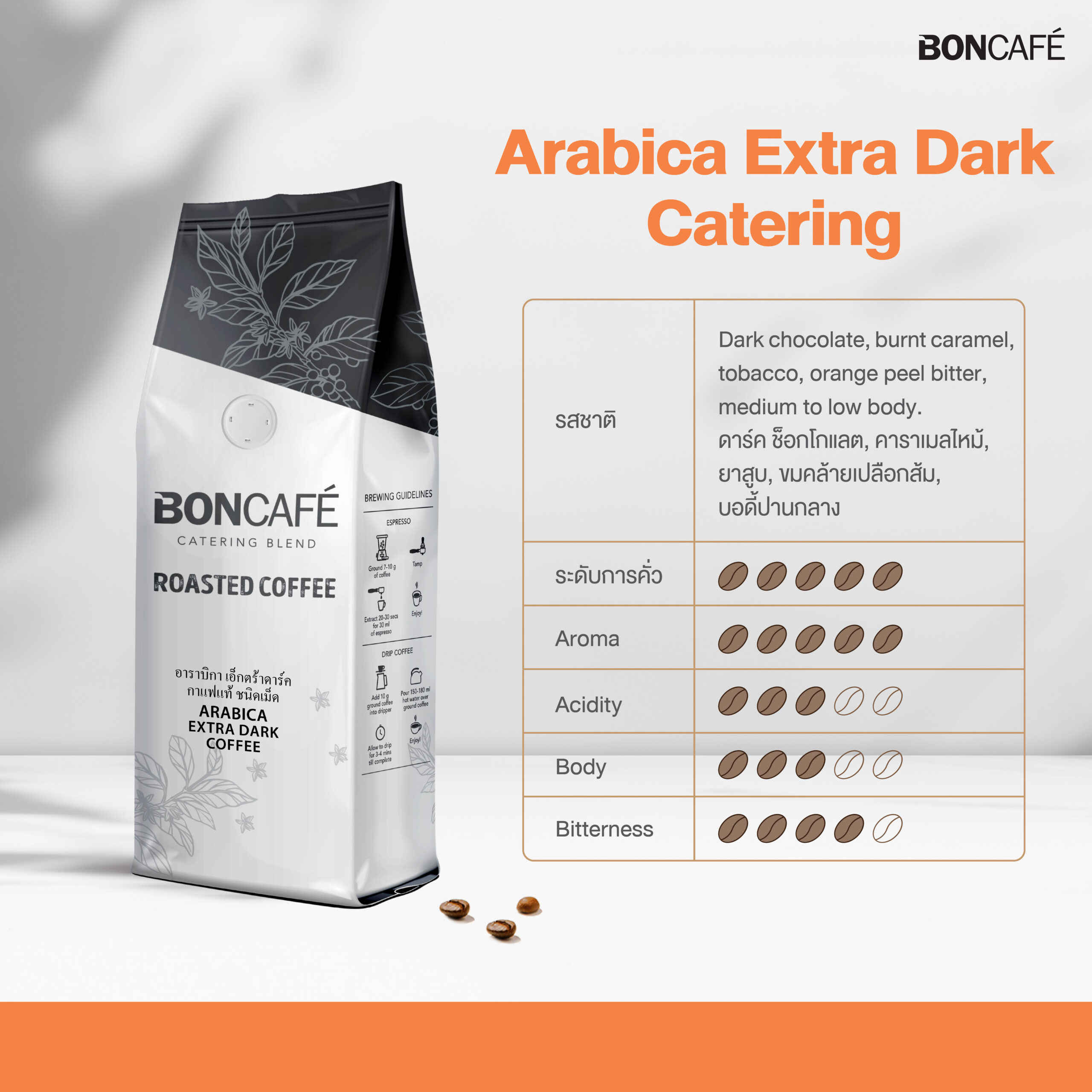 บอนกาแฟ เมล็ดกาแฟอราบิก้า เอ็กตร้า ดาร์ค – คั่วเข้มมาก (ชนิดเม็ด)
