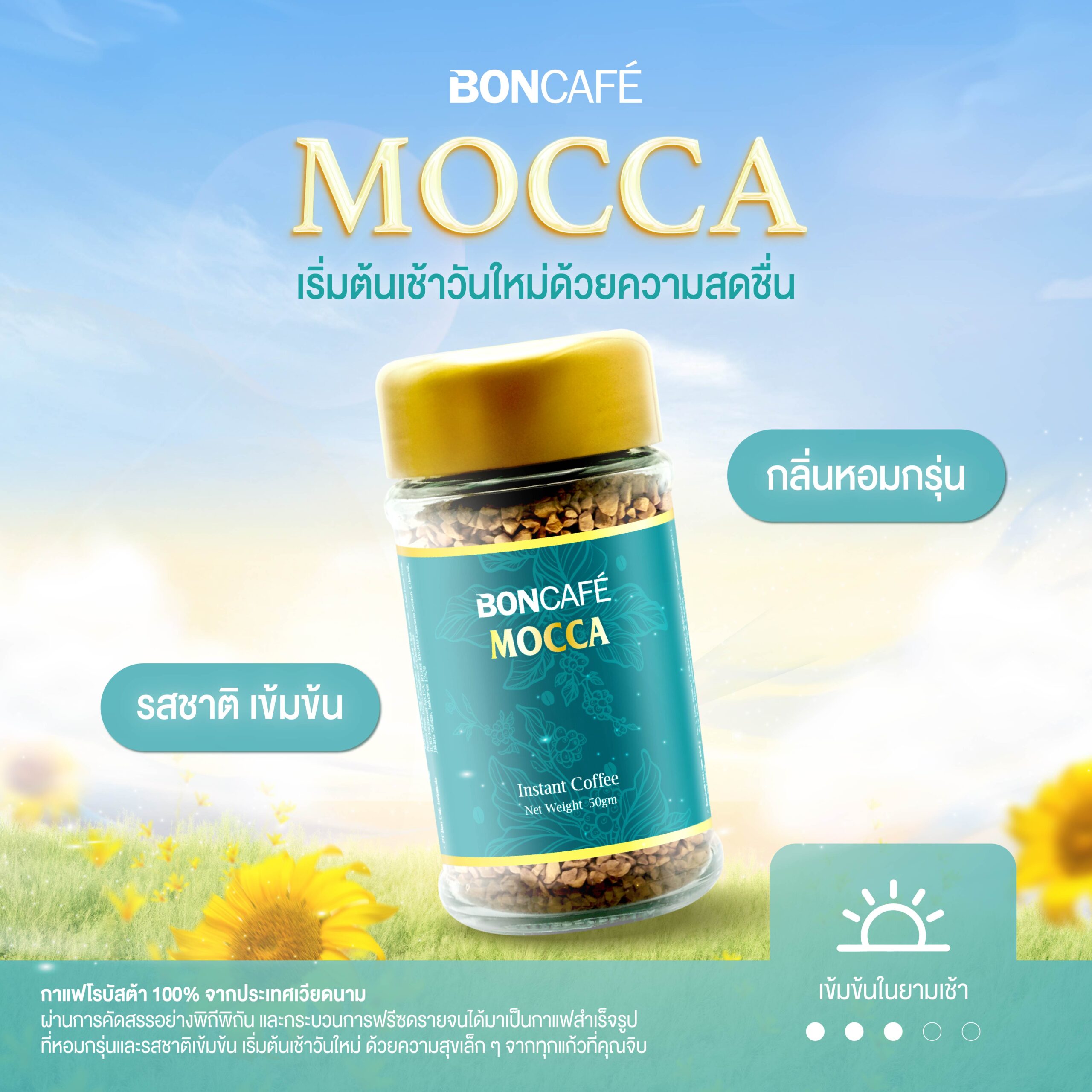 ดื่มด่ำกับรสชาติเข้มข้นและกลิ่นหอมกรุ่นของกาแฟคุณภาพสูง ผลิตจากเมล็ดกาแฟโรบัสต้าชั้นดีจากประเทศเวียดนาม ผ่านกระบวนการฟรีซดราย เพื่อคงกลิ่นและรสชาติใกล้เคียงกาแฟสดมากที่สุด ชงง่าย รสชาติเข้มข้น หอมยาวนาน ชัดเจน บอดี้แน่น กลิ่นหอมลึก พร้อมความเข้มที่เติมพลังให้เช้าวันใหม่ และยังคงความละมุนแบบพอดี
