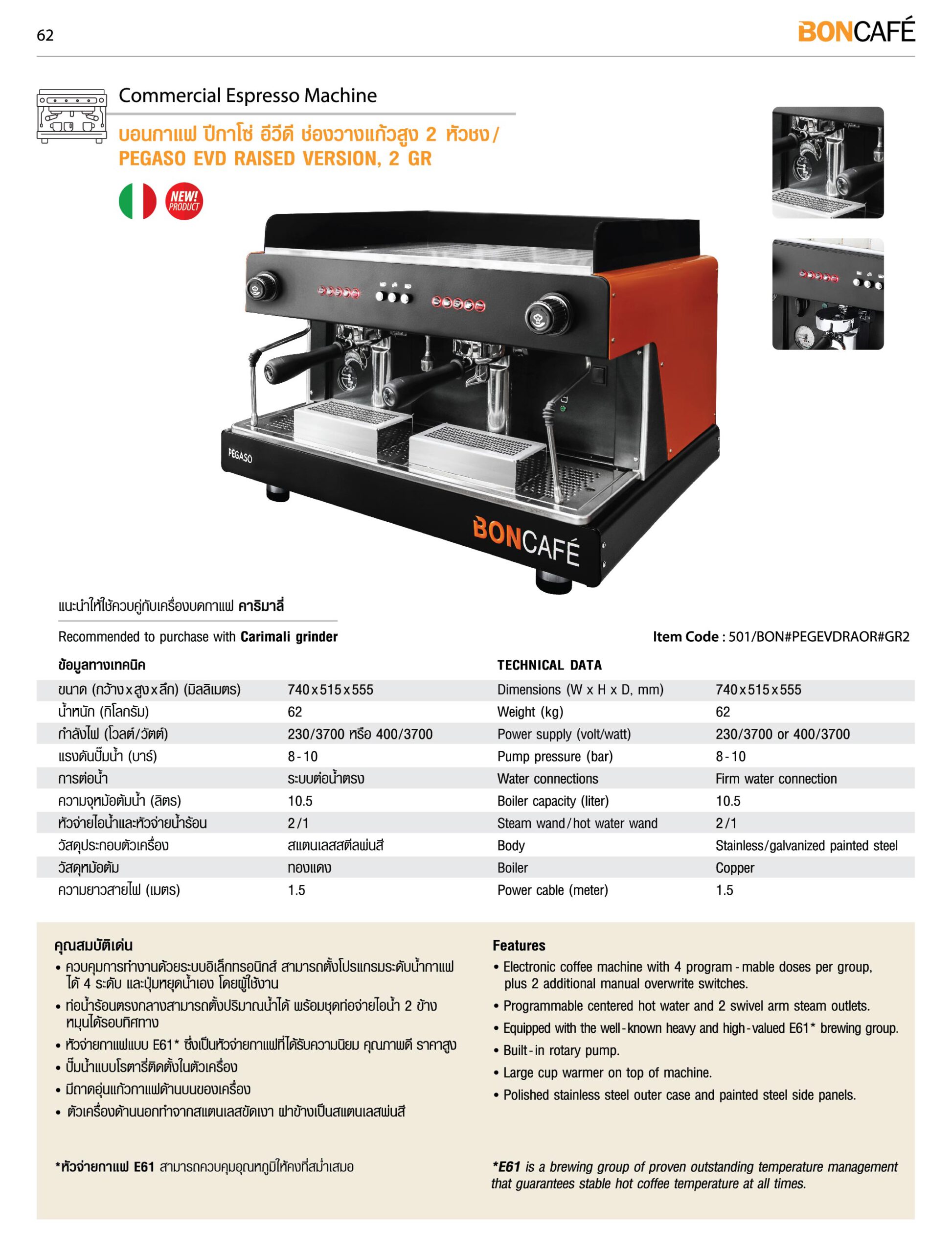 - หัวจ่ายกาแฟแบบ E61* ซึ่งเป็นหัวจ่ายกาแฟ ที่ได้รับความนิยม คุณภาพดี ราคาสูง