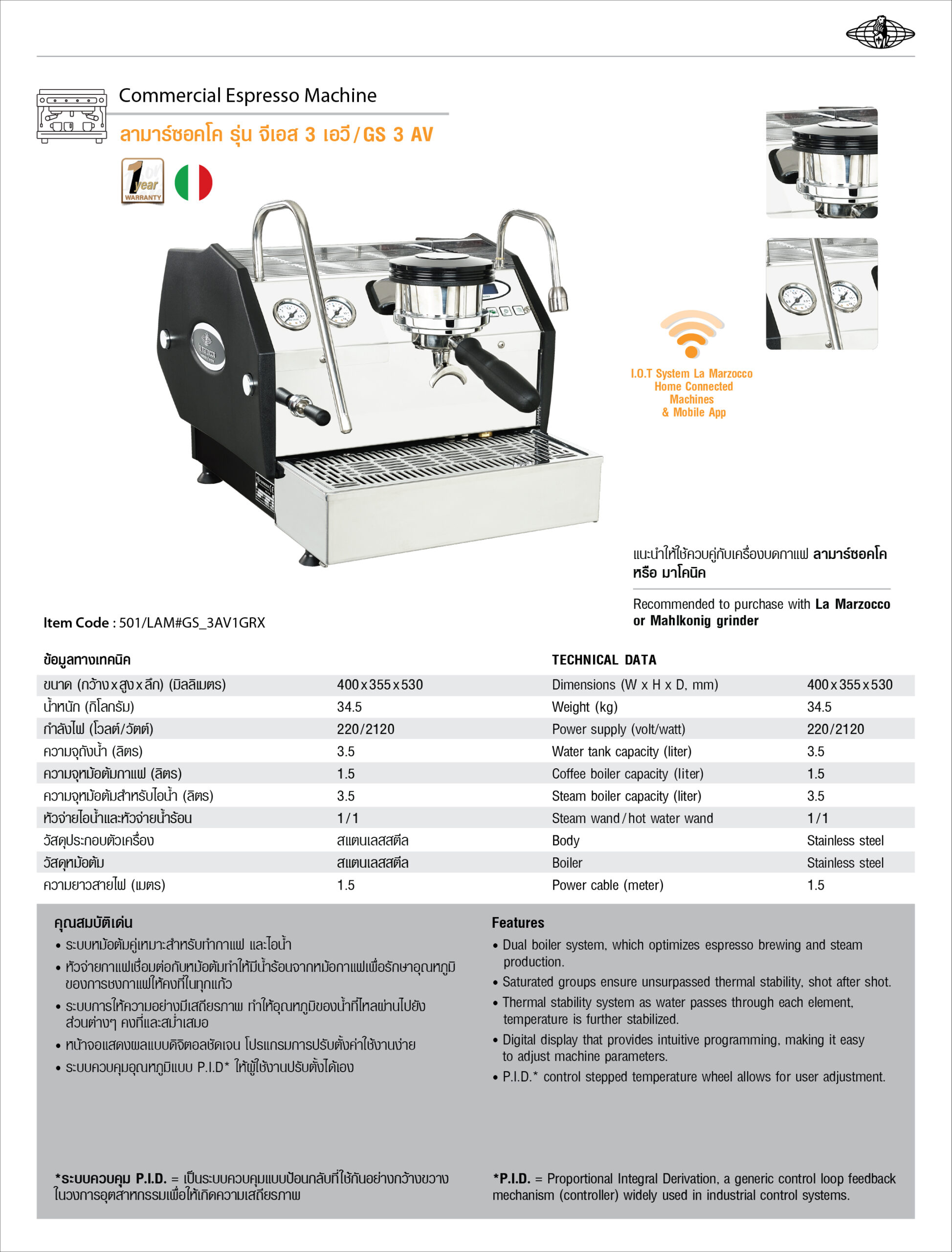 เครื่องชงกาแฟ ลามาร์ซอคโค จีเอส3 เอวี La Marzocco GS3, AV