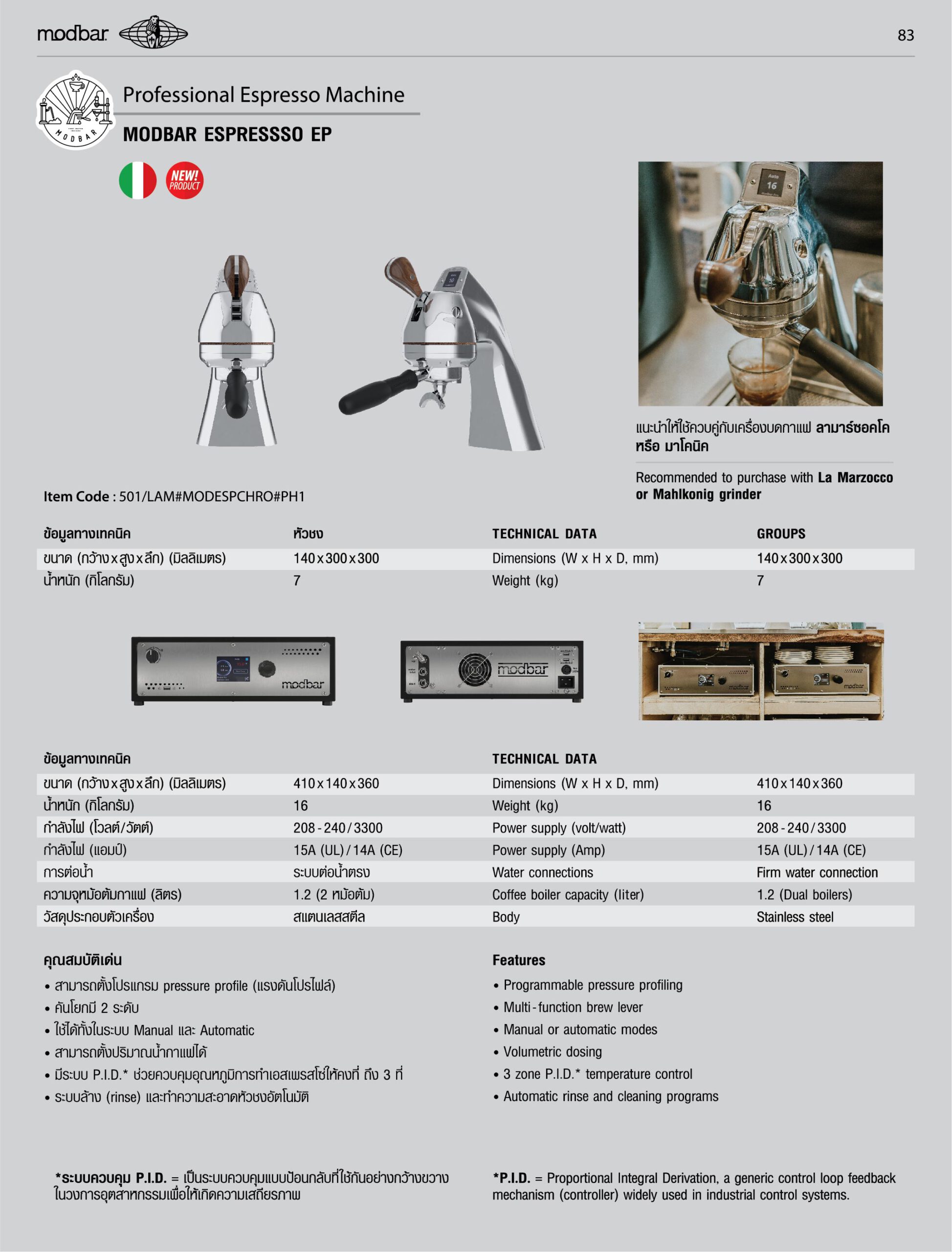ระบบ P.I.D.* ช่วยควบคุมอุณหภูมิการทำเอสเพรสโซ่ให้คงที่ ถึง 3 ที่