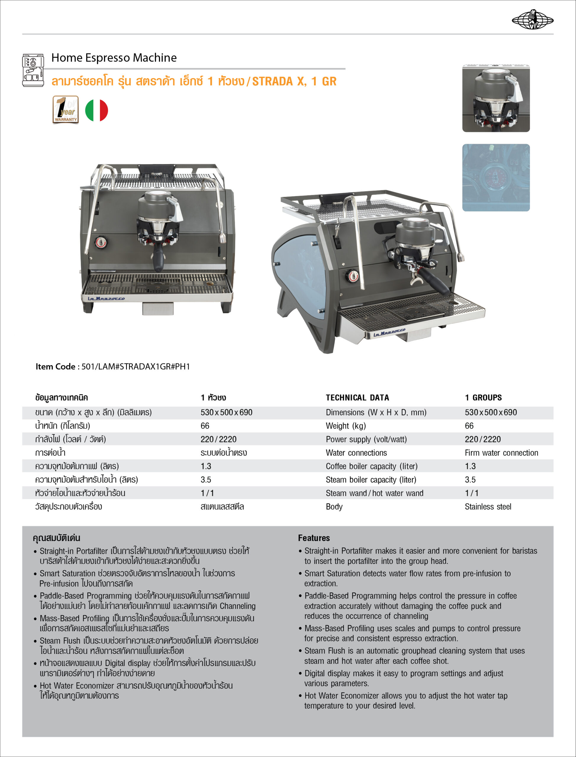 – Straight-in Portafilter เป็นการใส่ด้ามชงเข้ากับหัวชงแบบตรง ช่วยให้บาริสต้าใส่ด้ามชงเข้ากับหัวชงได้ง่ายและสะดวกยิ่งขึ้น