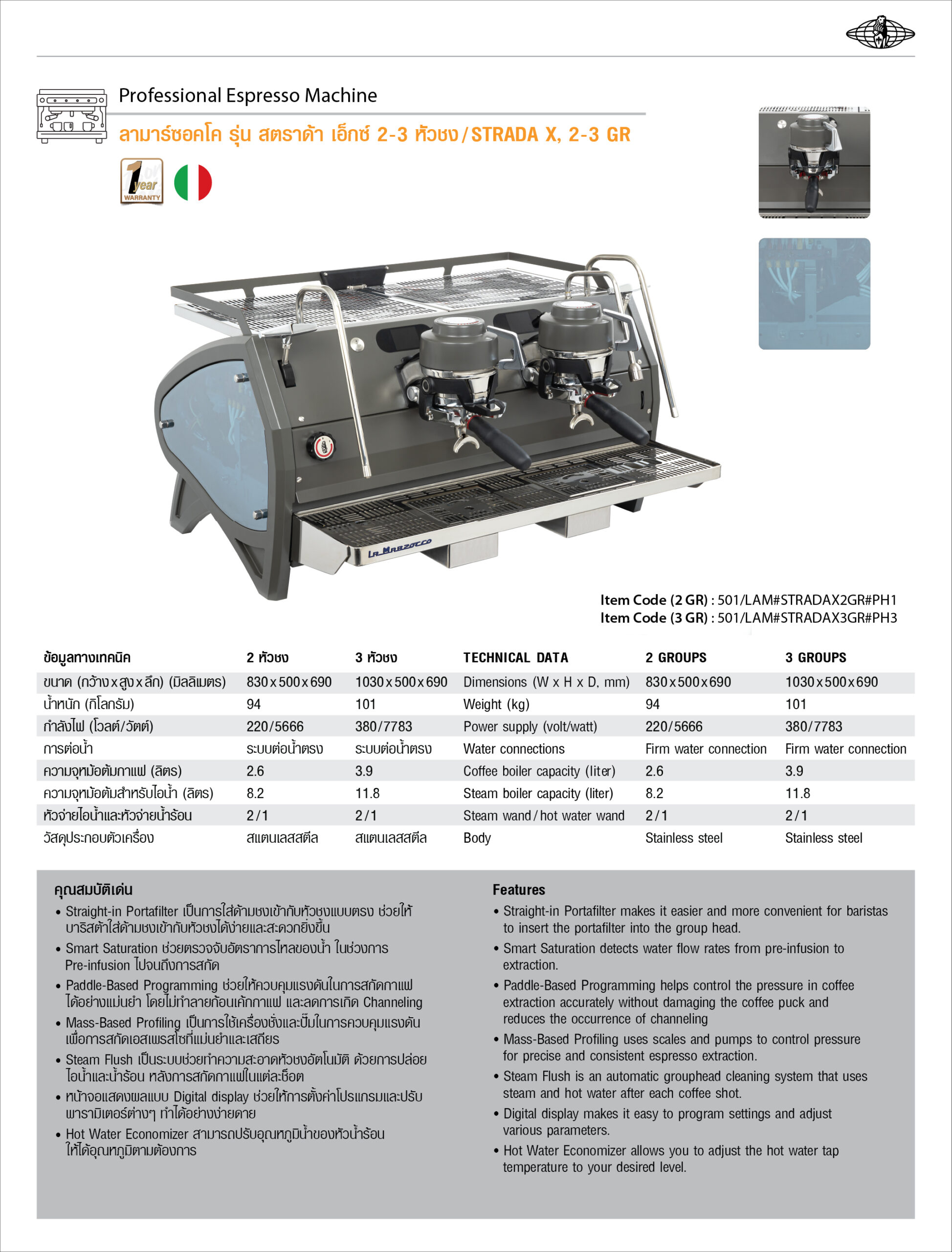 | ขนาด | 1 หัวชง, 2 หัวชง, 3 หัวชง |