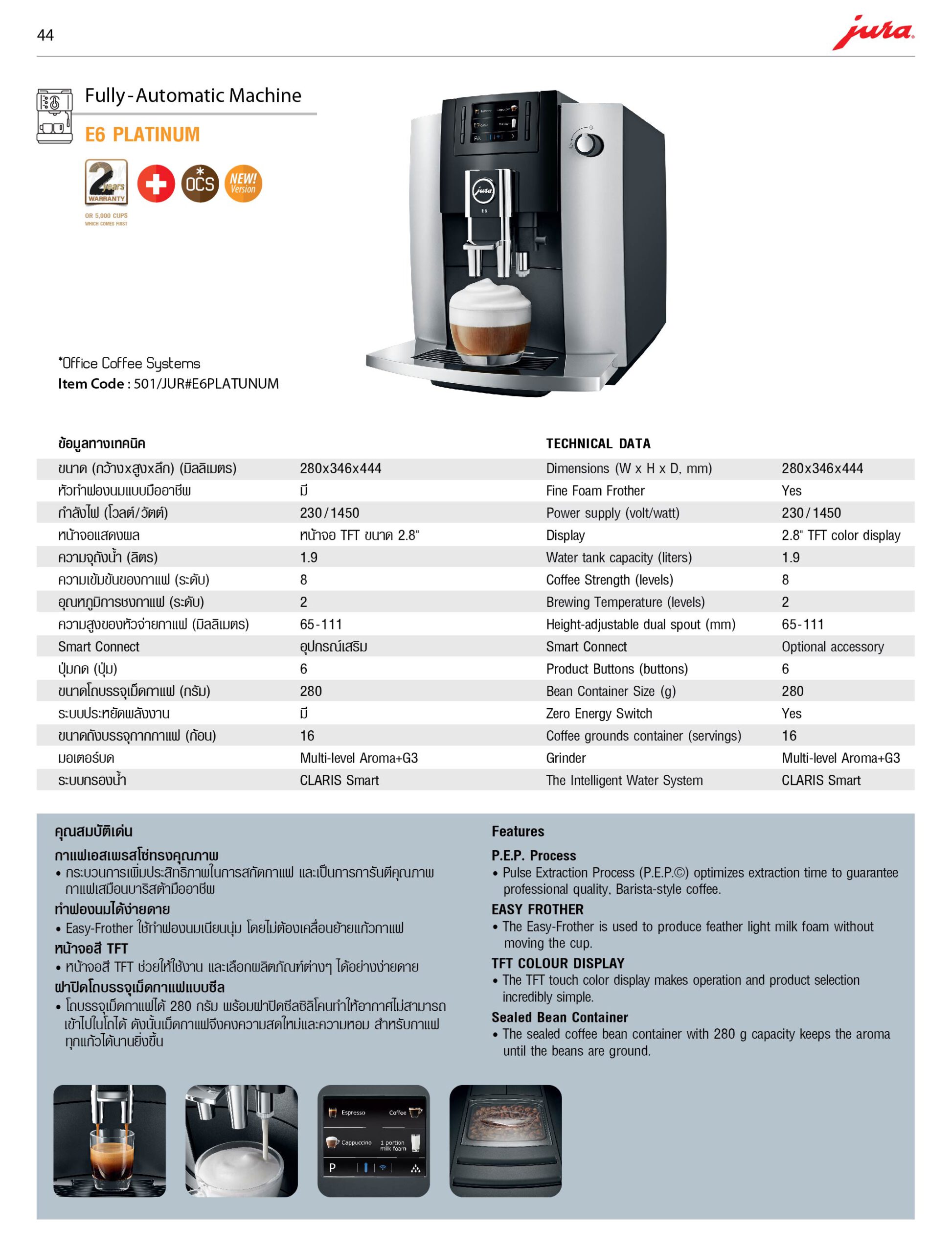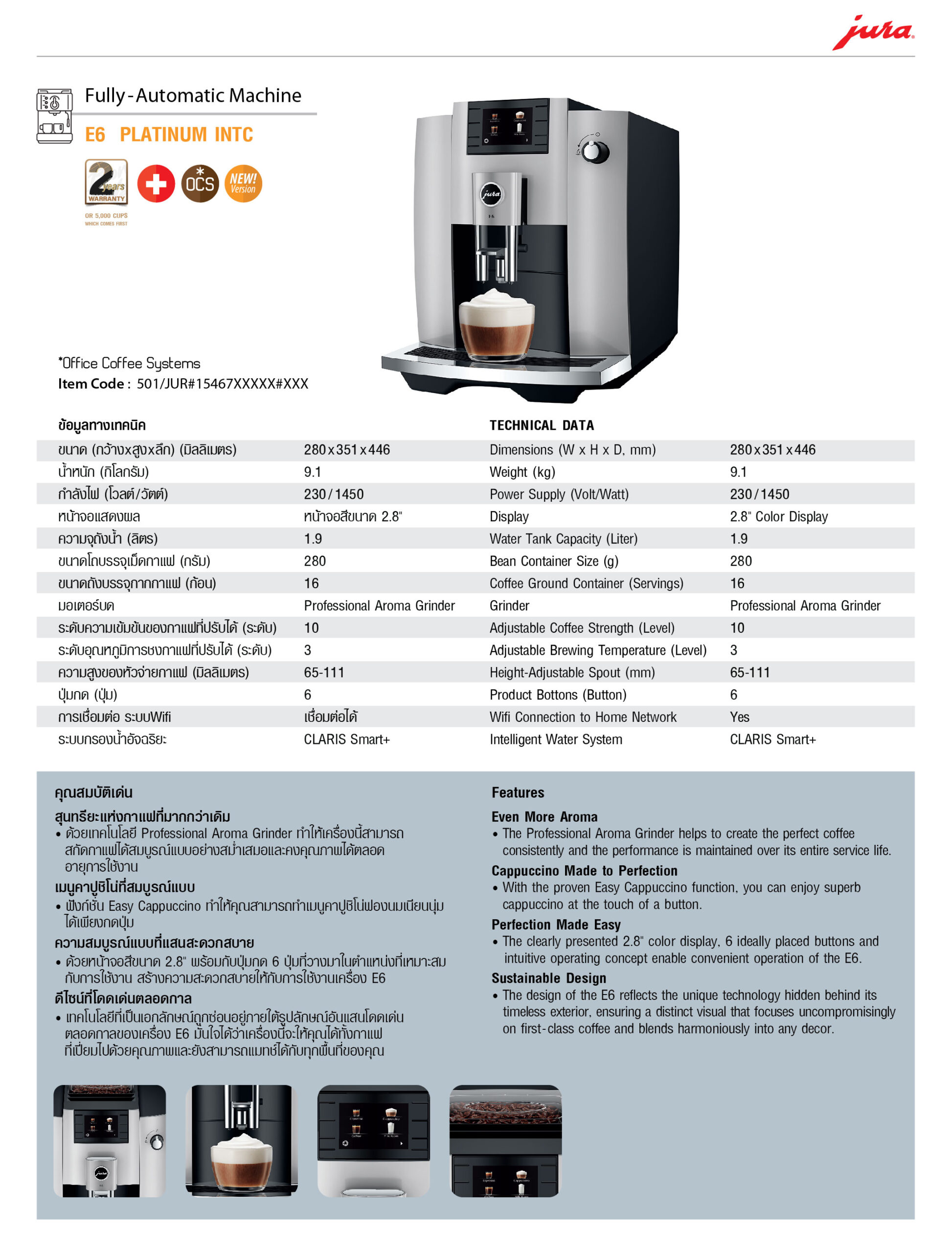 เครื่องชงกาแฟอัตโนมัติ จูร่า E6, Platinum INTC / Jura E6, Platinum INTC