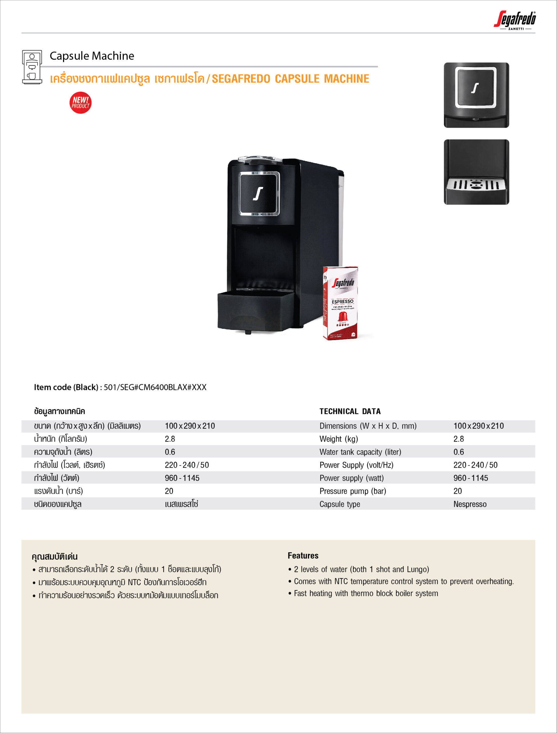 เครื่องทำกาแฟระบบแคปซูล เซกาเฟรโด